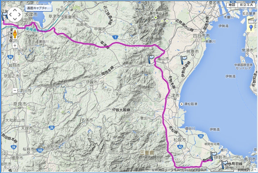 ちなみに京都からここまでのルートはこちら。