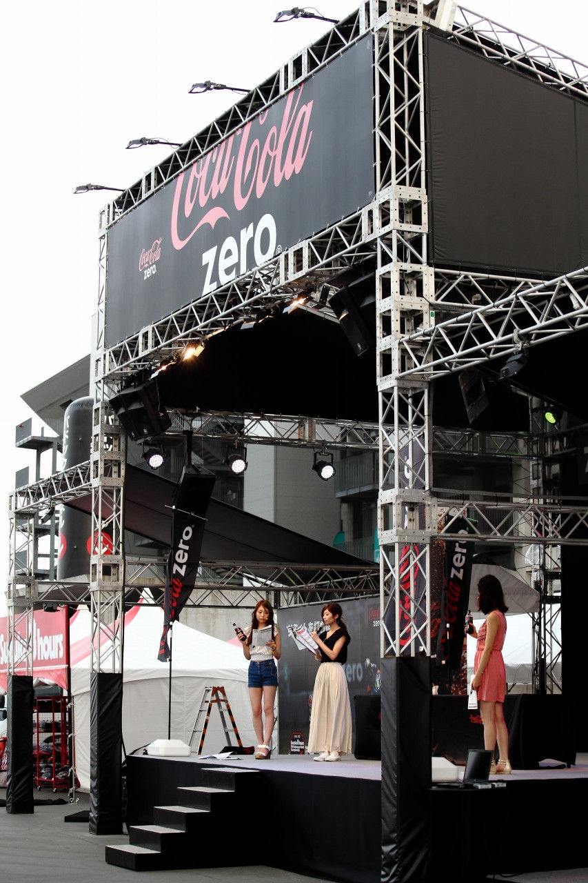 メインスポンサーのコカコーラゼロ特設ステージでは、実際のお客さん捕まえてリハーサルの真っ最中。