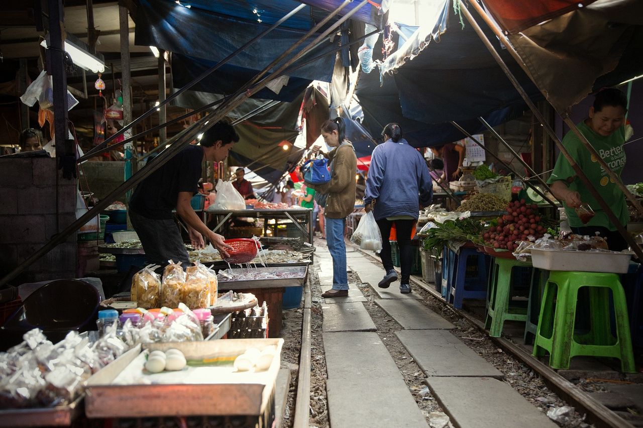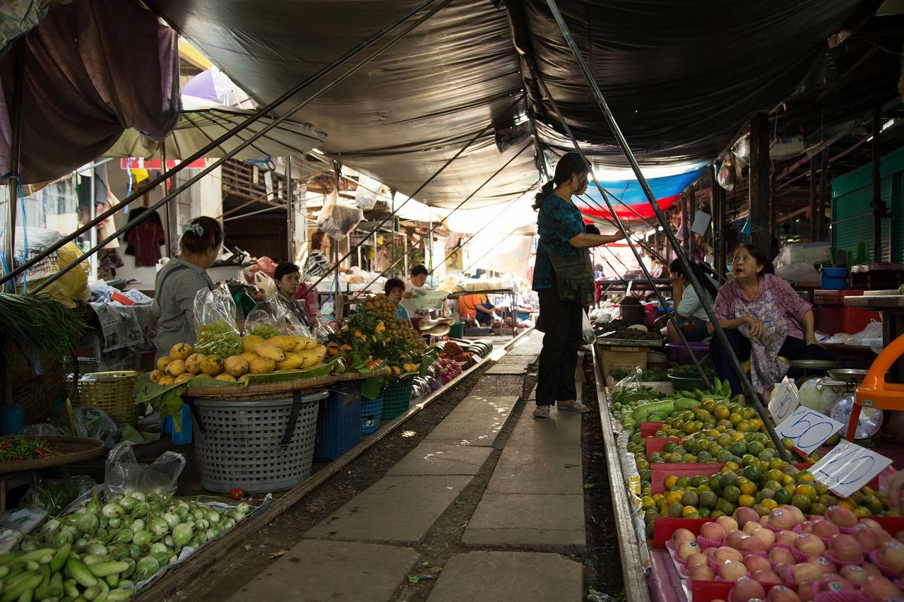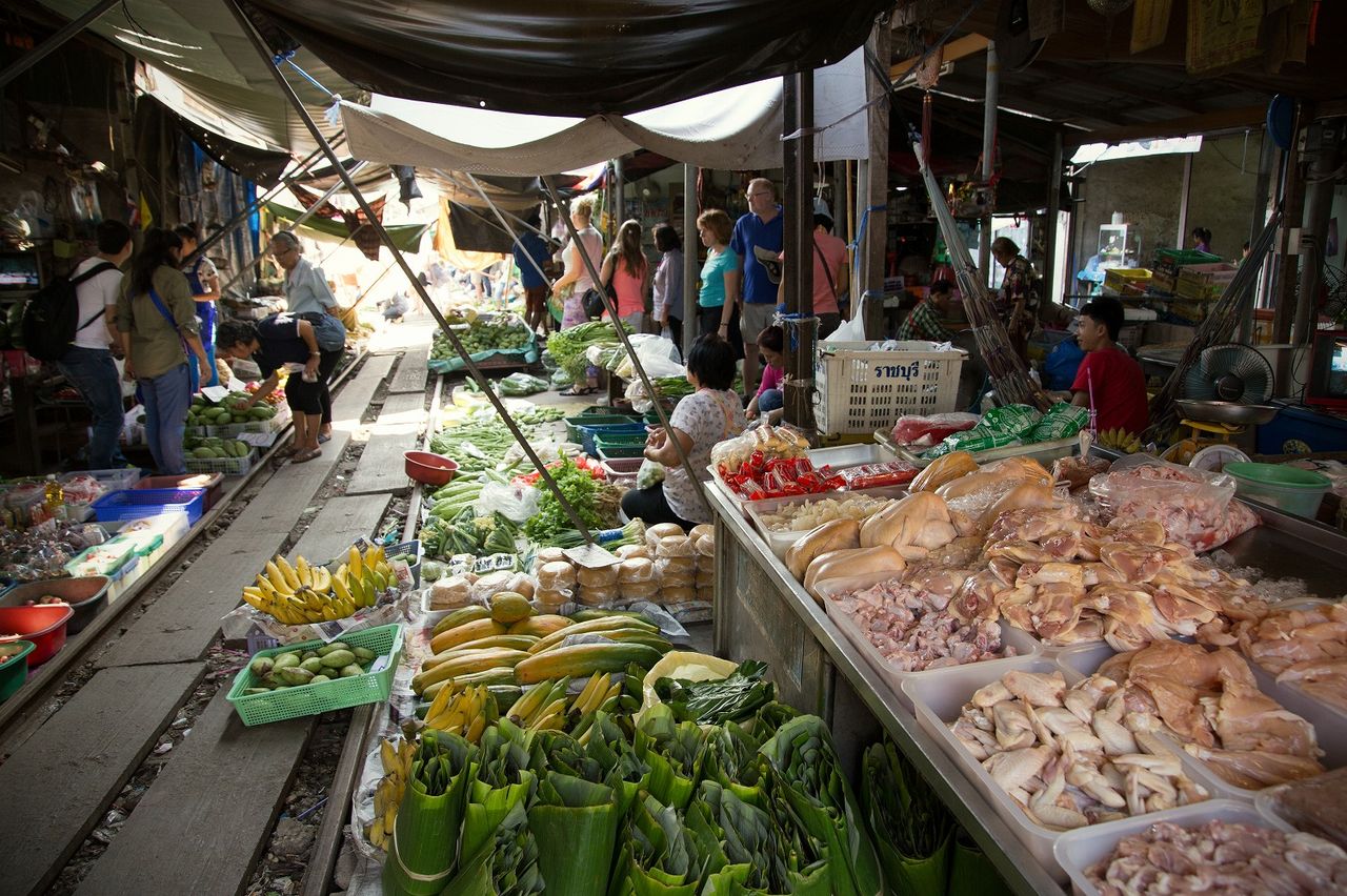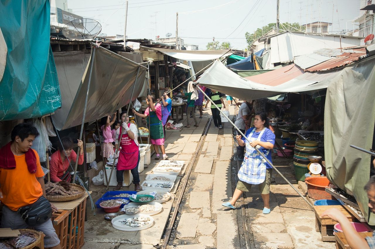 タイのメークロン市場という市場にて。
