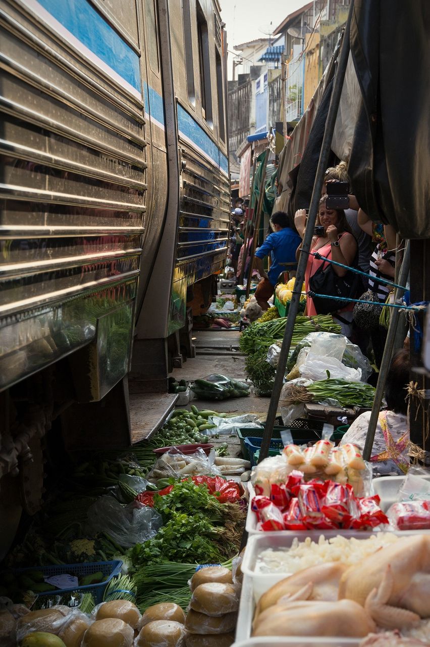 実際に走っている線路の隣に市場が成立しちゃってるところ