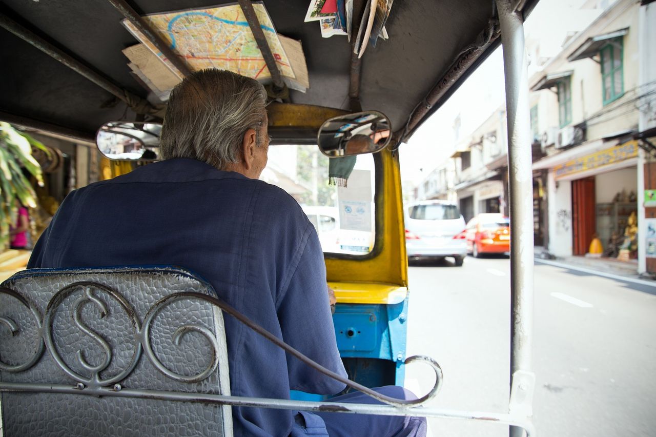 駅からトゥクトゥクと呼ばれるタイの三輪車に乗り寺院へ