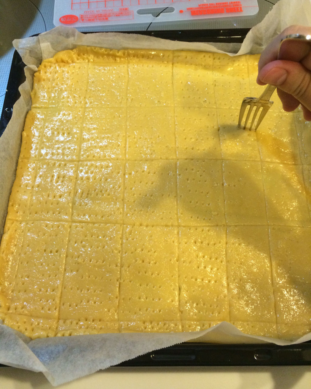 サブレ生地は先にピザカッターで切れ目だけ入れておくと後で切りやすいよ