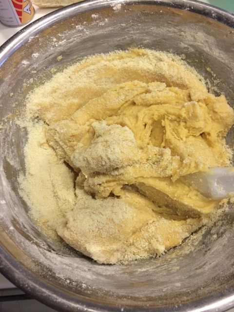 パートサブレ生地を天板に敷いたクッキングシートの上で伸ばすよ