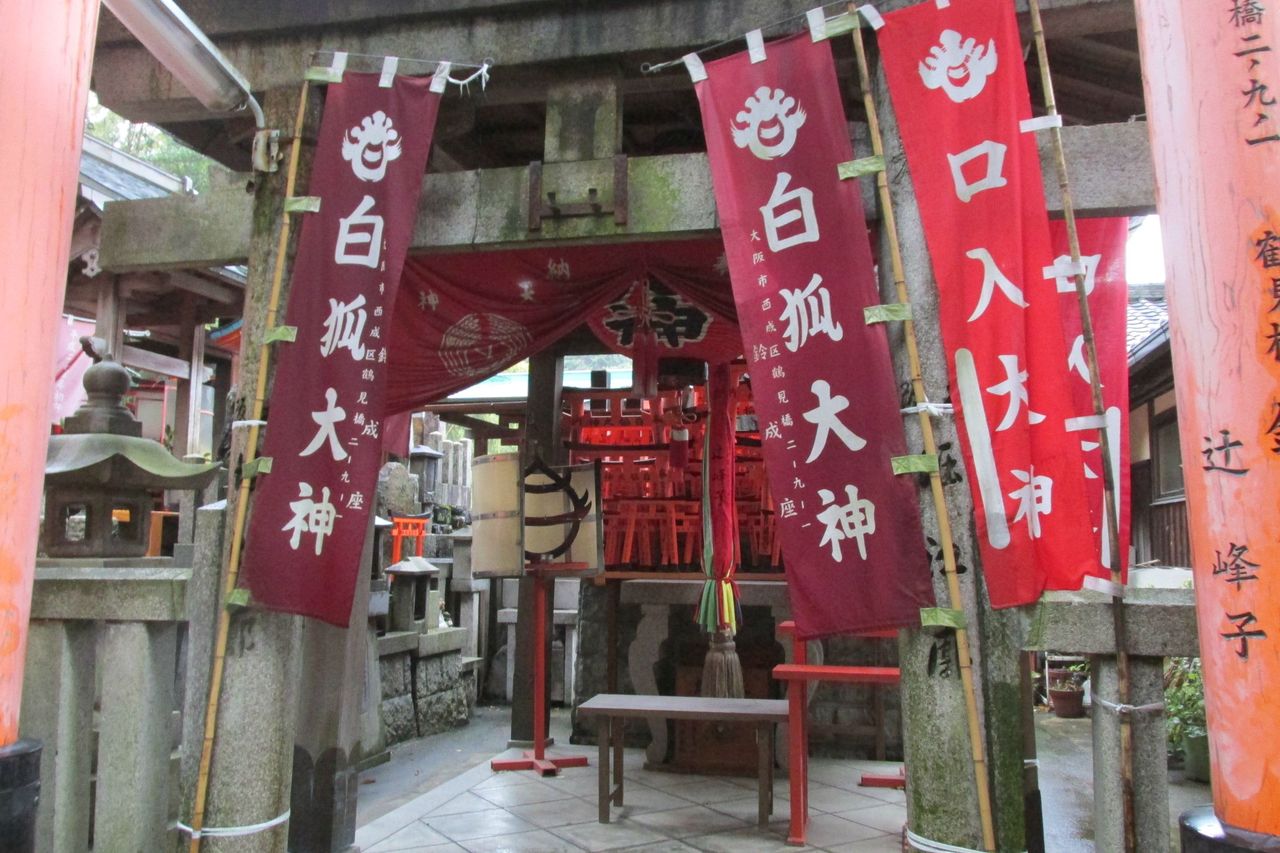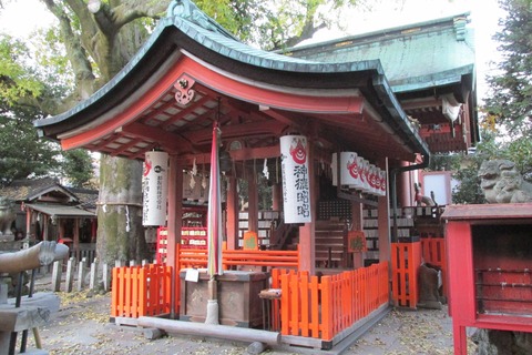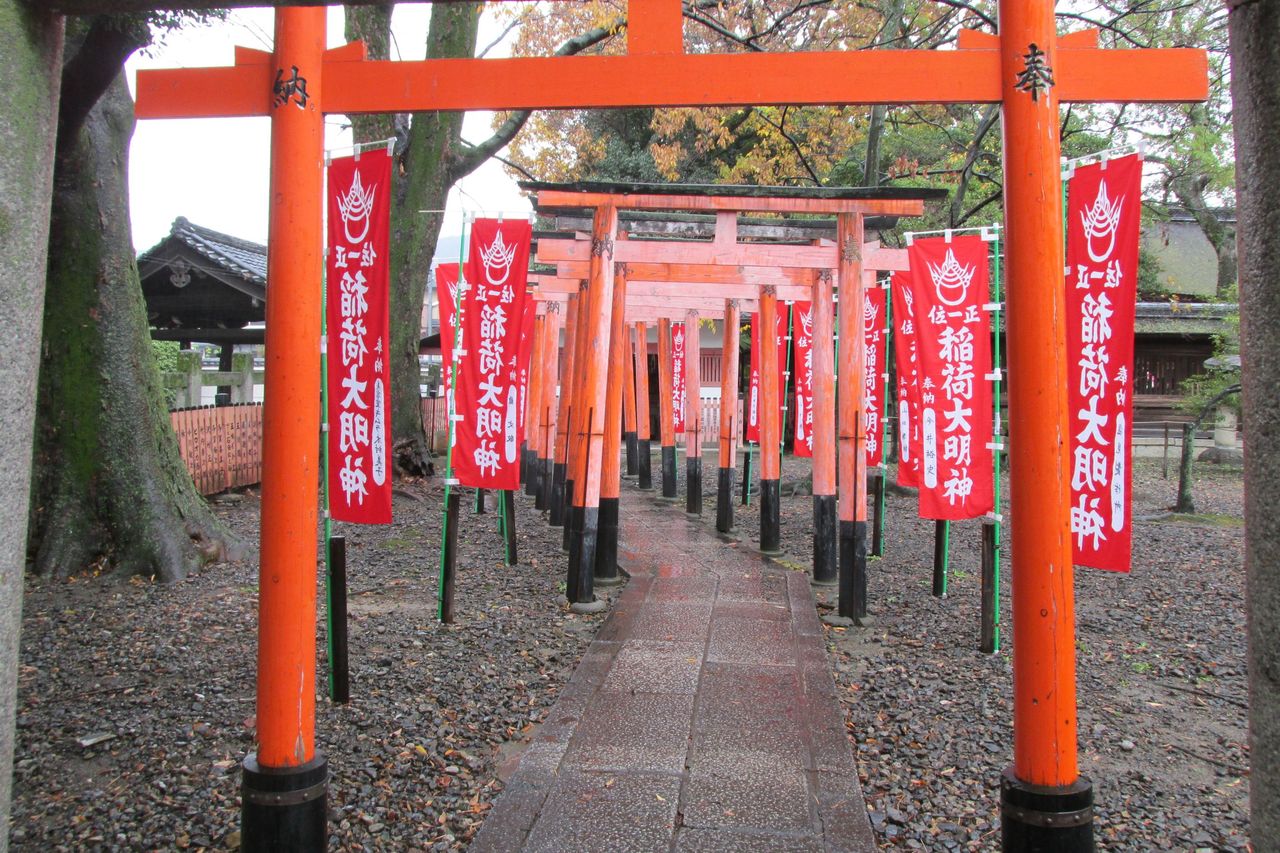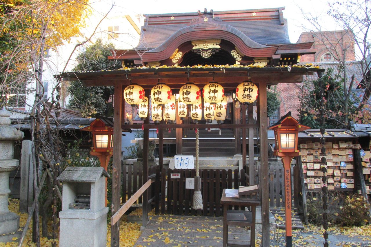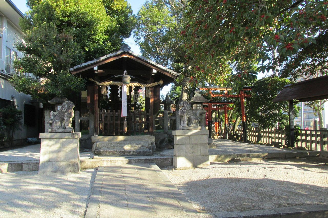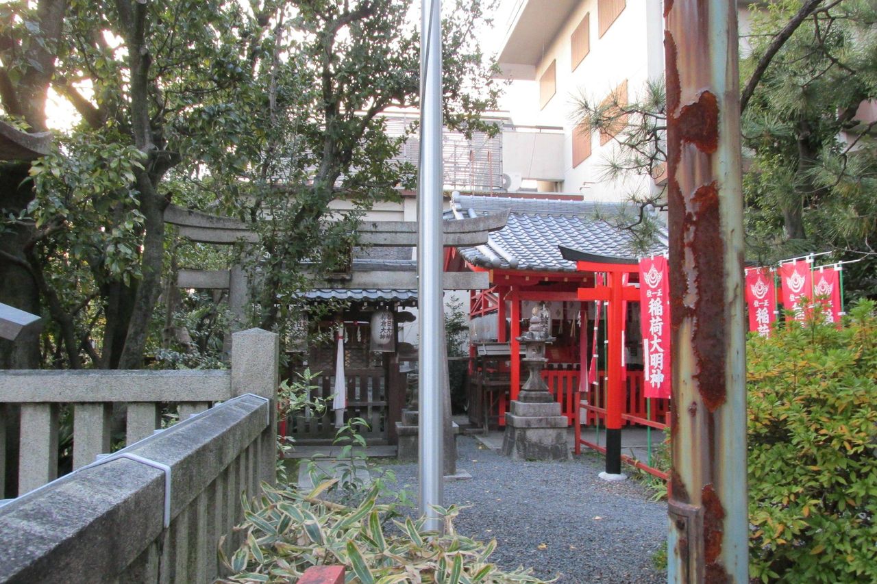 二条付近にある宇迦之御魂大神(うかのみたまのおおかみ)を祀る神社である。