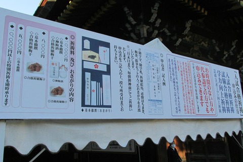 合格祈願に関する立札。