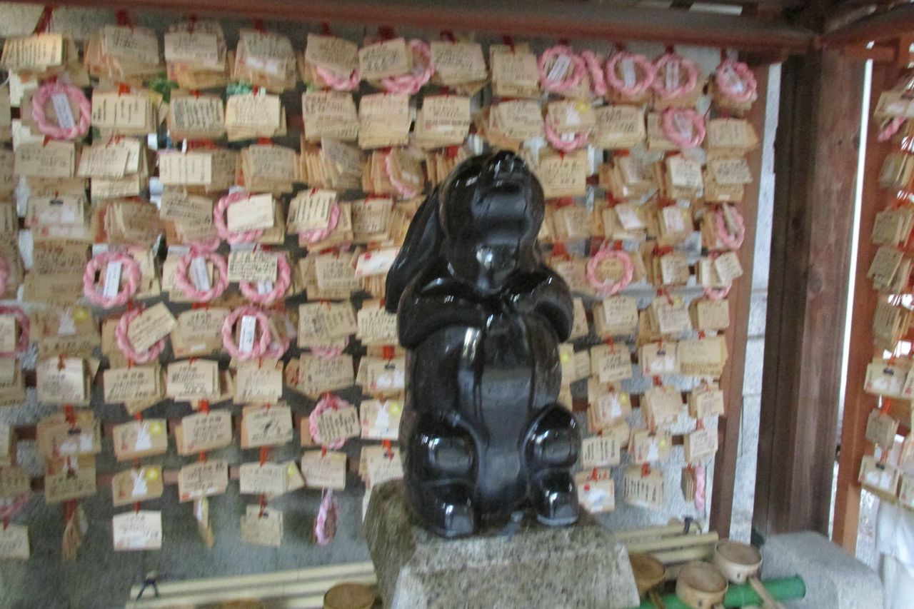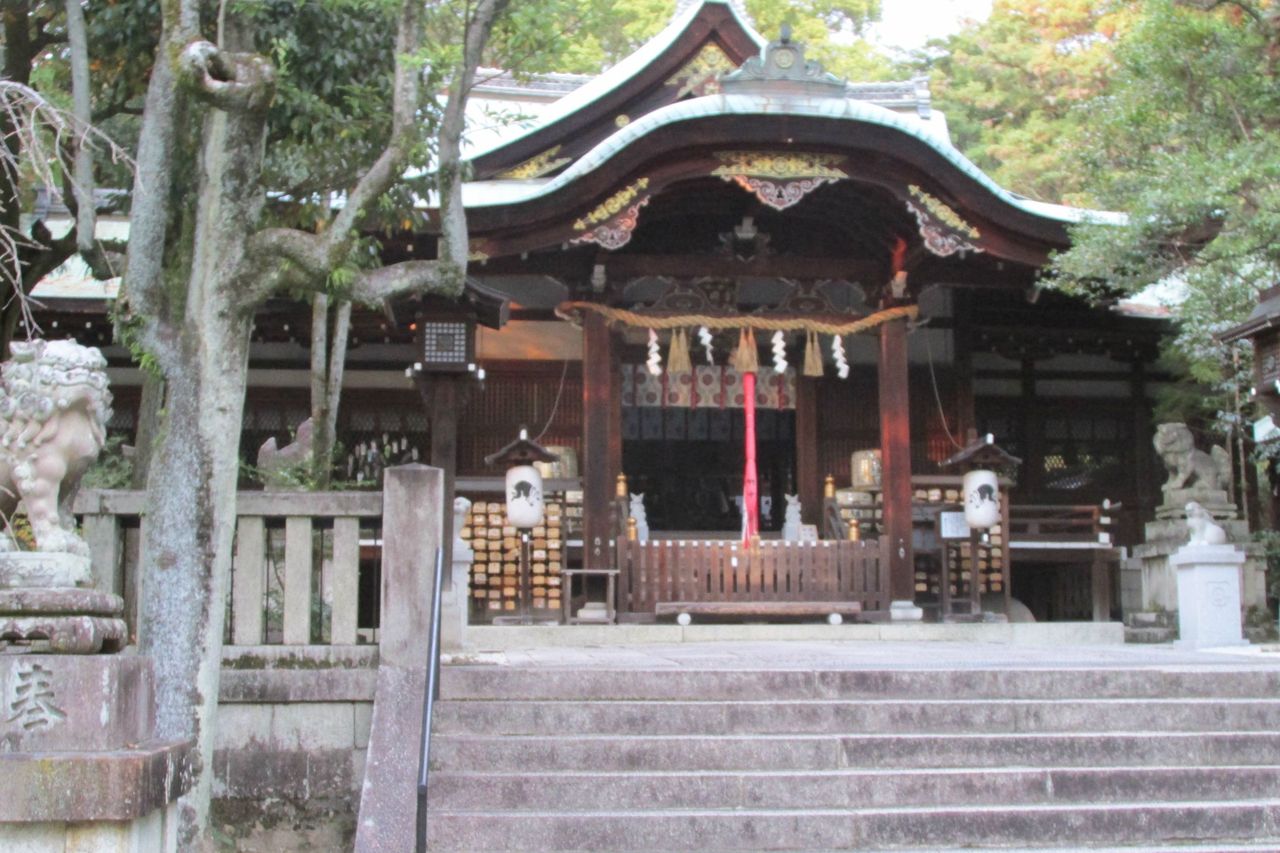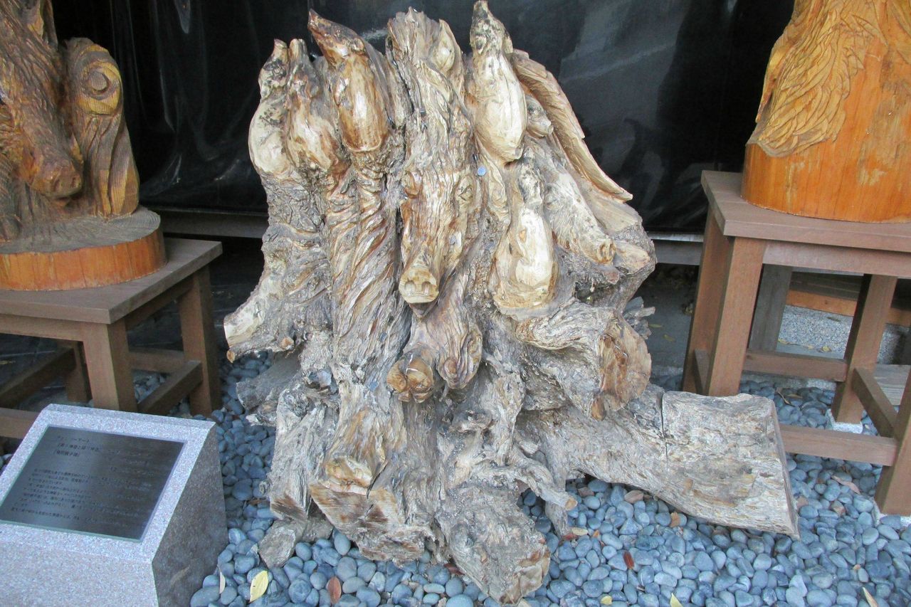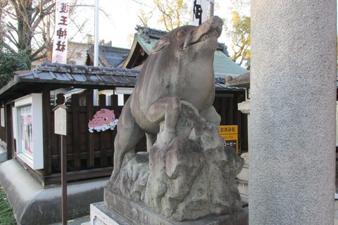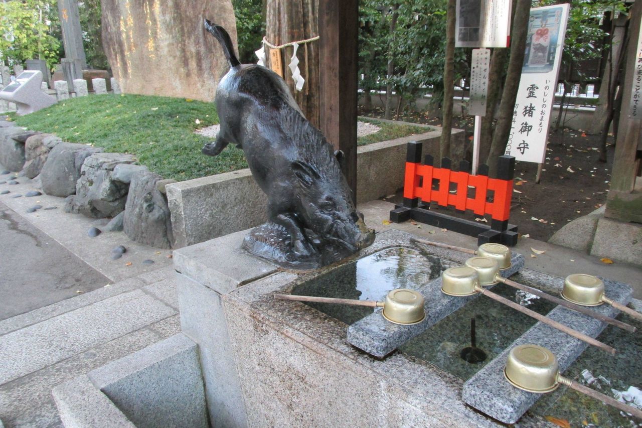 この神社の特徴は猪と深い縁があることであり、狛犬ならぬ狛猪が参拝客を迎えてくれる。
