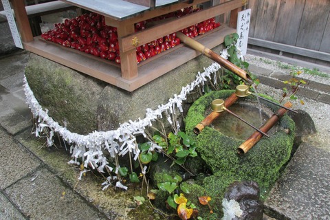 次に手水舎で左手右手、左手に水を入れ口を軽くすすぐ