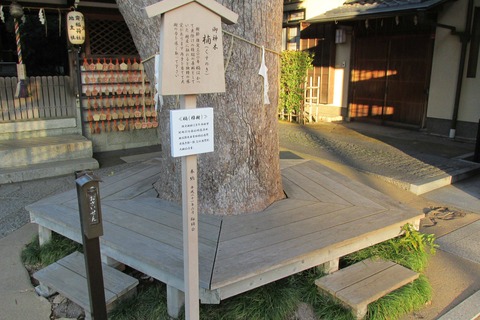 境内には御神木として大きな榎が植わっていて、坂本竜馬とお涼の縁を結んだという謂れがあるそうな。