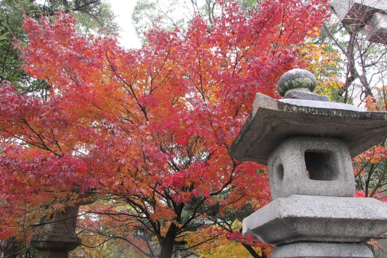 本殿の灯篭にはトレードマークの桜の紋章。