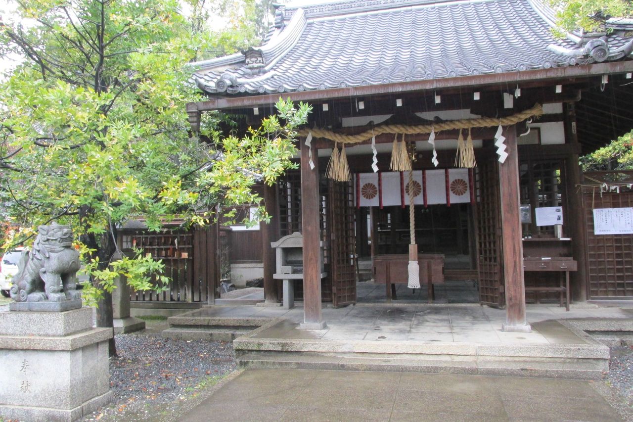 菅原氏の邸宅跡に建てられた小さな神社のようだ。