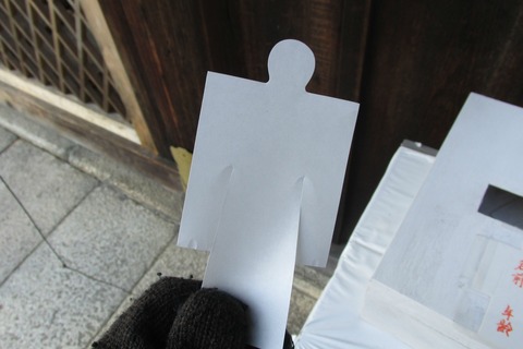 これに名前と年齢を書いて体を軽くこすり、息を吹きかけると穢れが人形に移るのだそうだ。