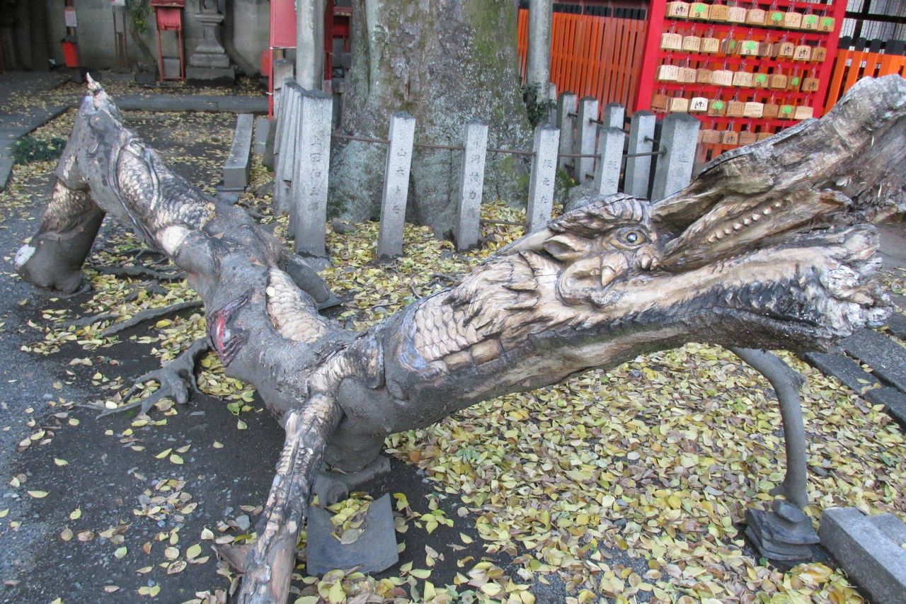 この木から落枝した大ぶりな枝には、チェーンソーアート世界一の人が竜を掘ったそうだ。