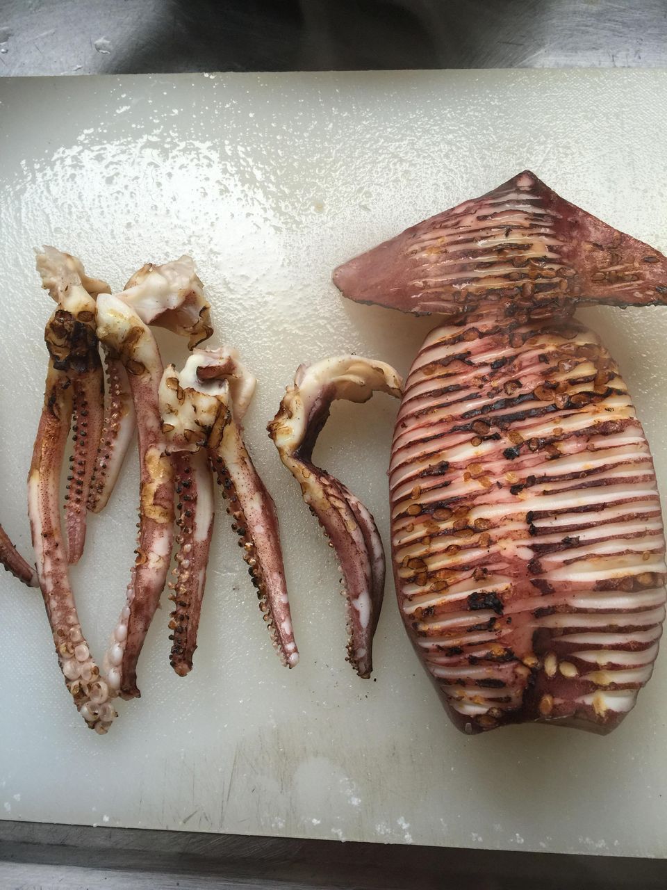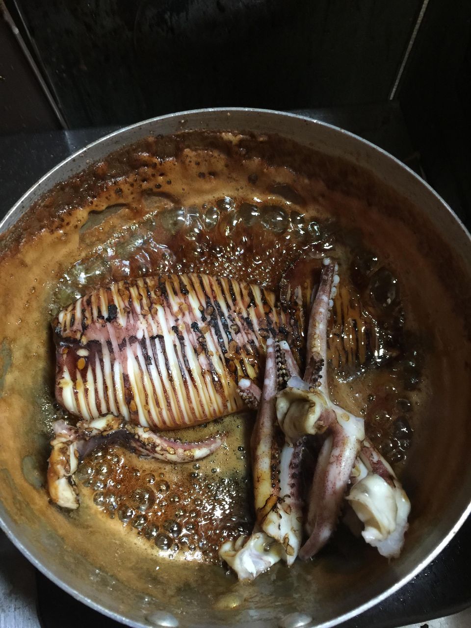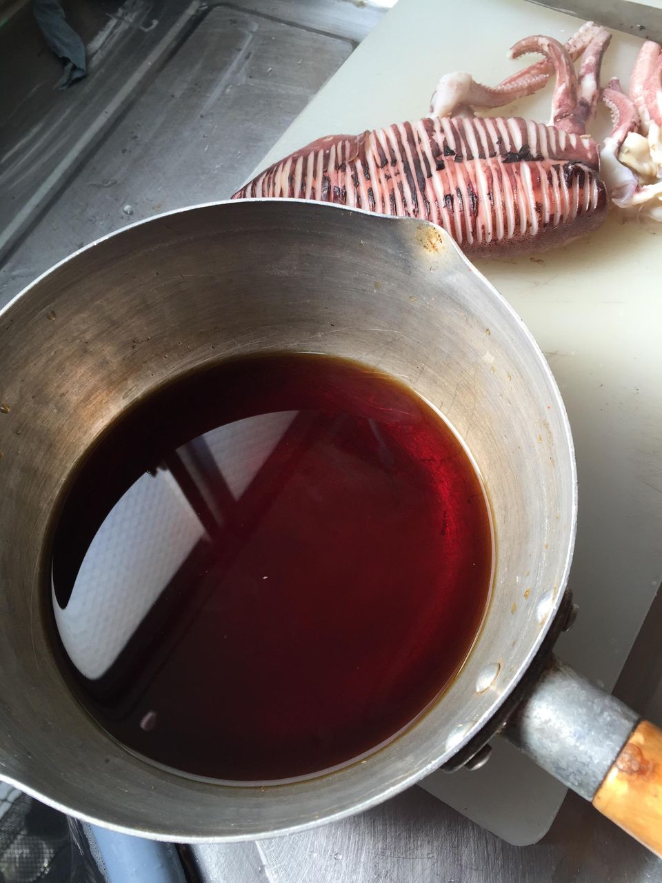 - これくらいになったらイカの表面だけを軽く焼いて焦げ目をつけるのですよ
