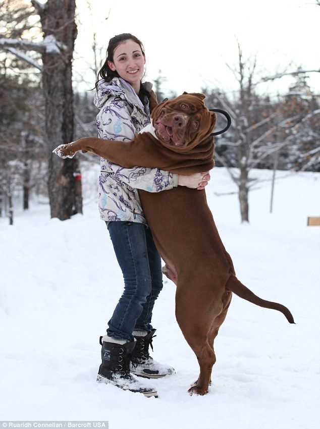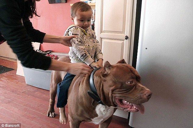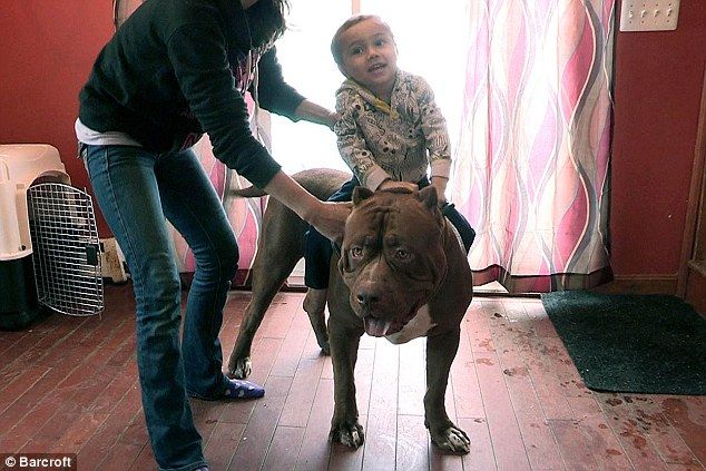 http://www.dailymail.co.uk/news/article-2976472/All-aboard-Hulk-world-s-biggest-pit-bull-28-inch-wide-HEAD-takes-owner-s-three-year-old-boy-rides.html