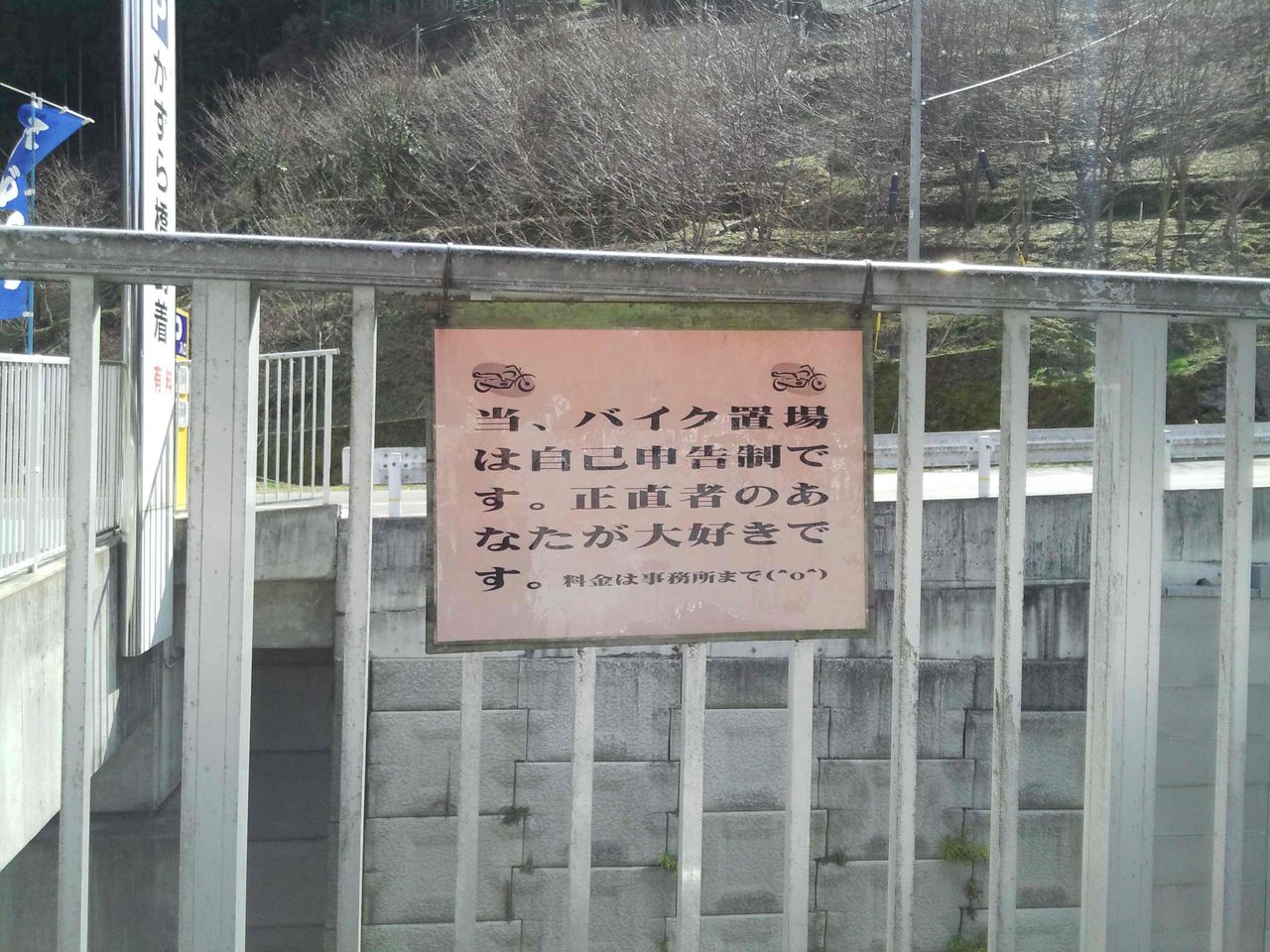 ただで止められる温泉付近の駐輪場に止めて