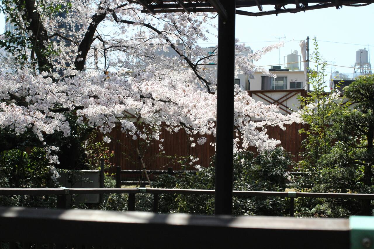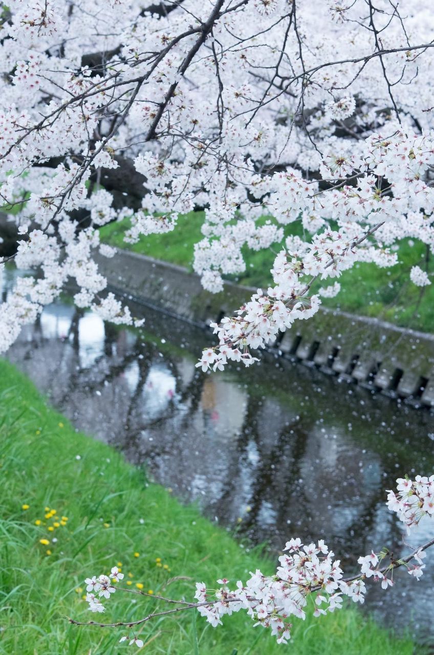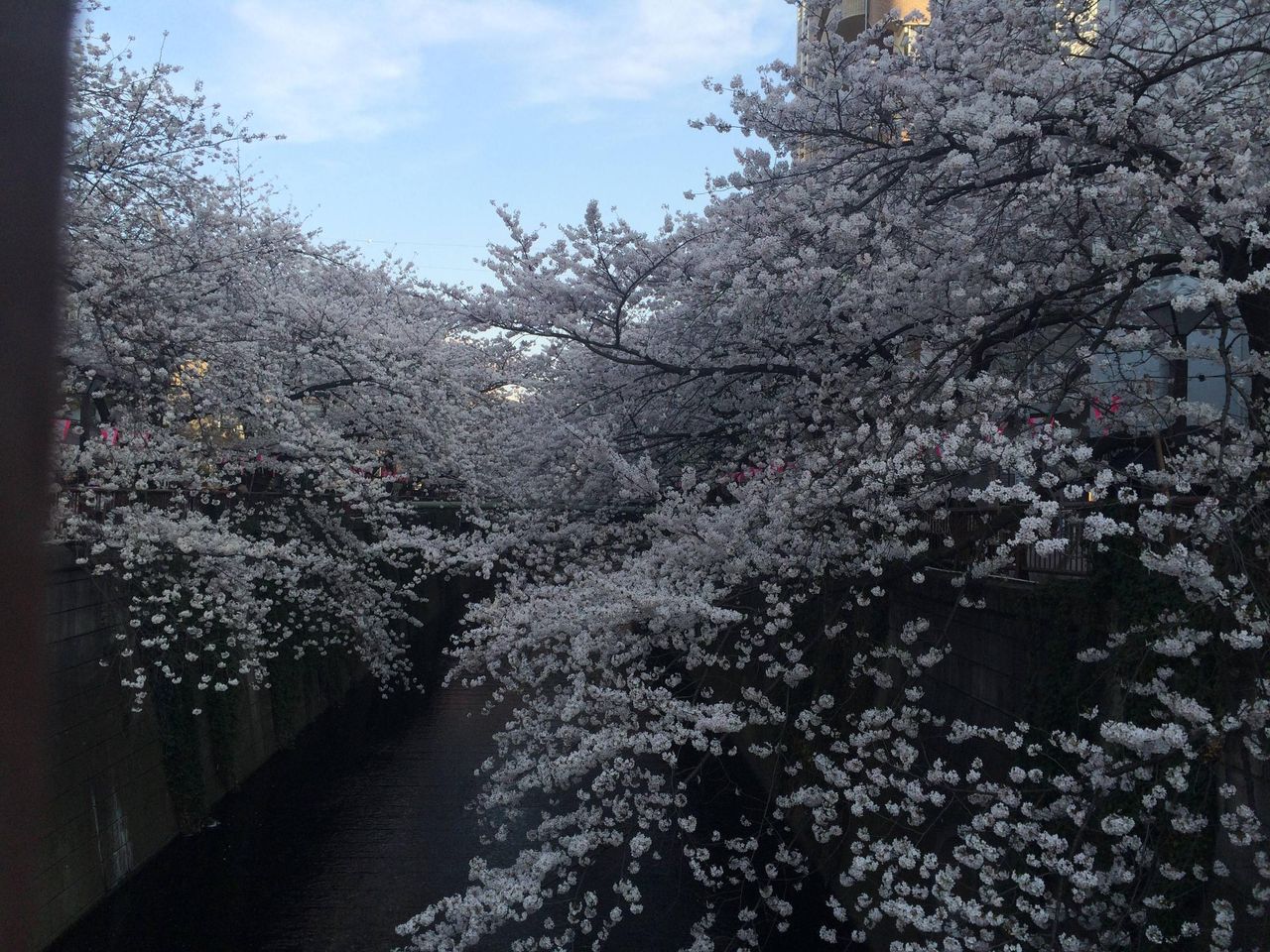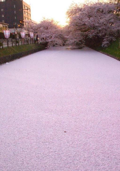 - 目黒側に浮いた花びらがきれいでなぁ