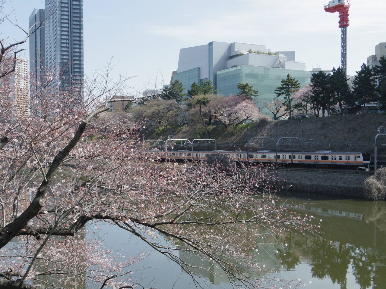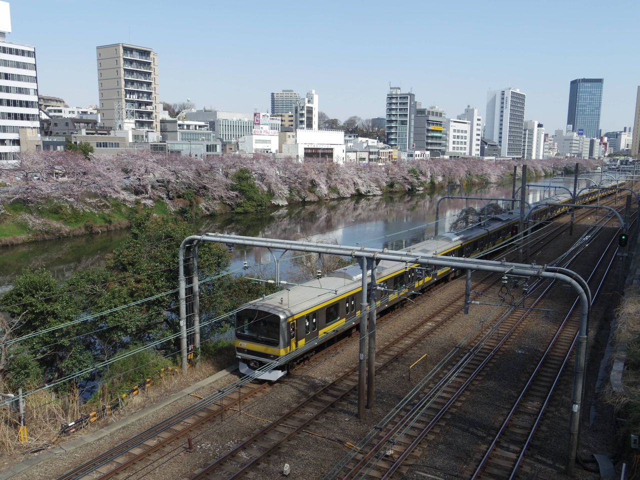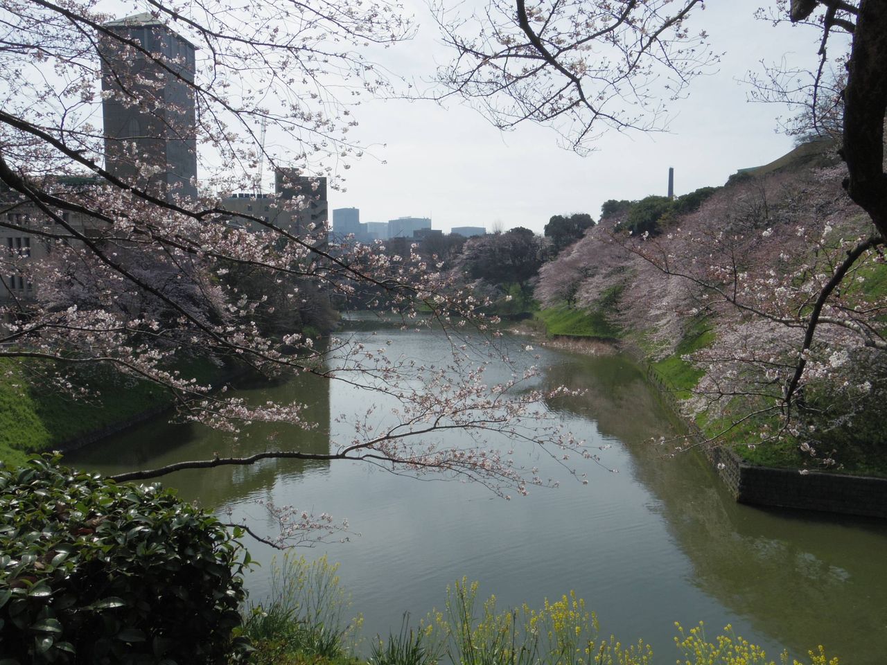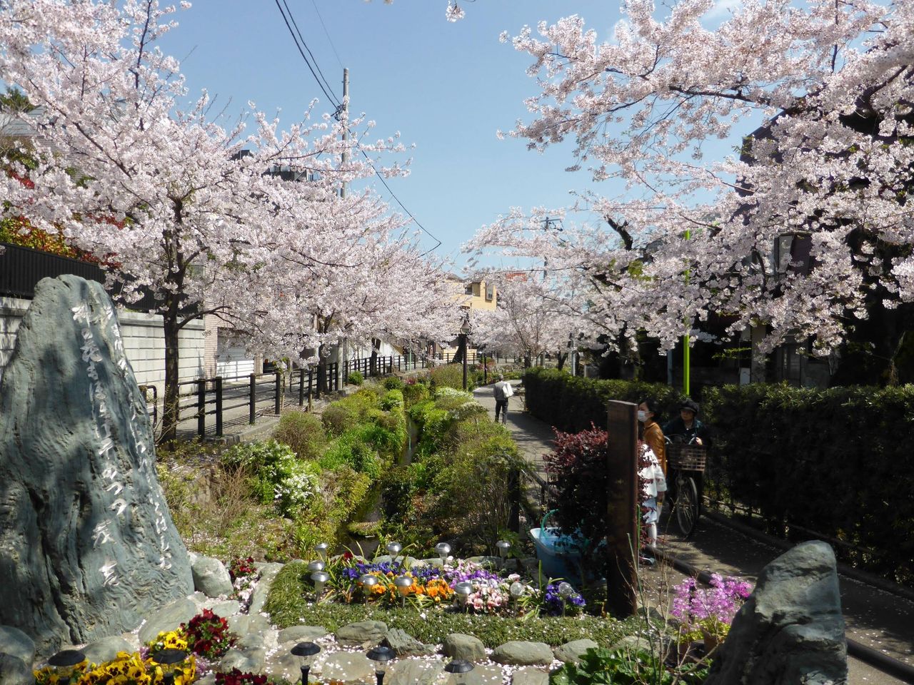 - 目黒側に浮いた花びらがきれいでなぁ