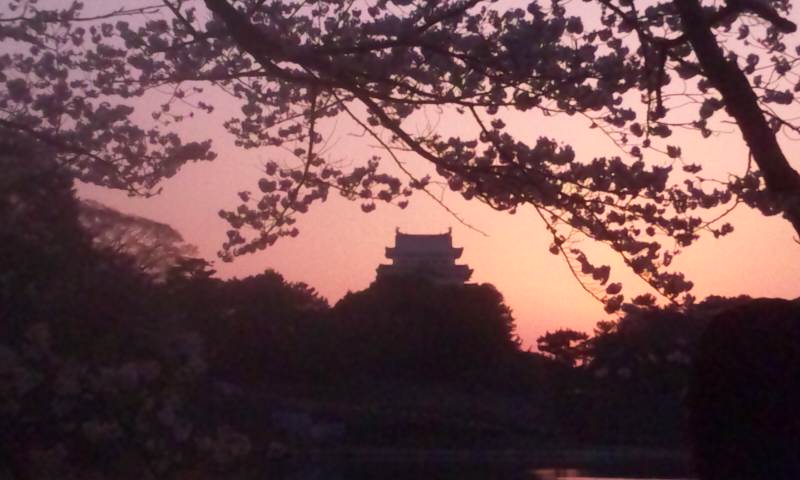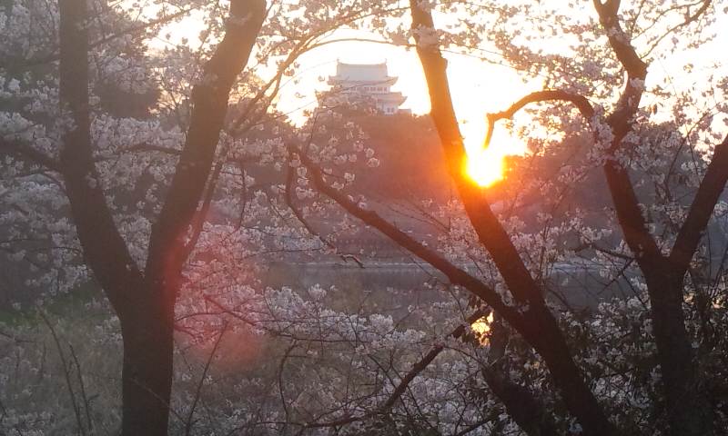 夕日?と城と桜と