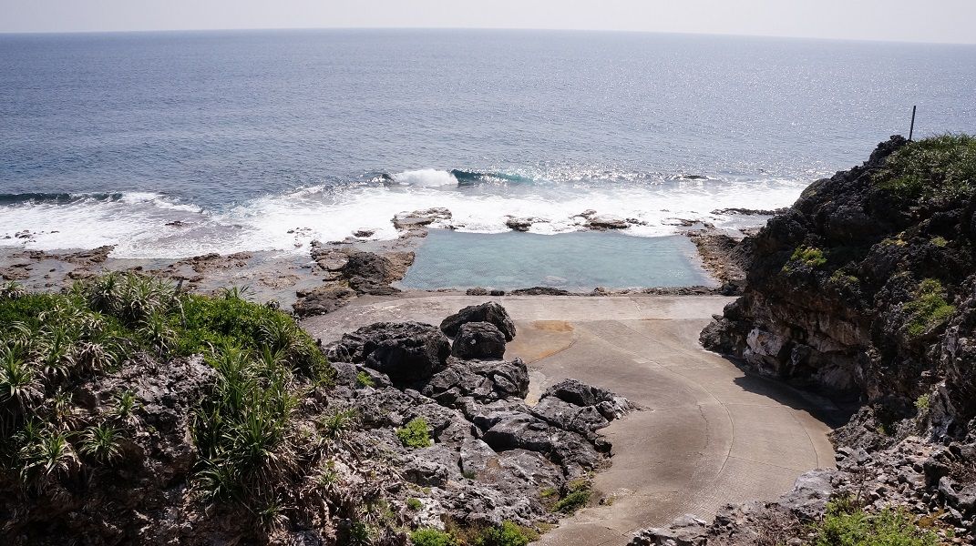 島の東側にあり、塩屋プール同様、岩場をくり抜いたプール。