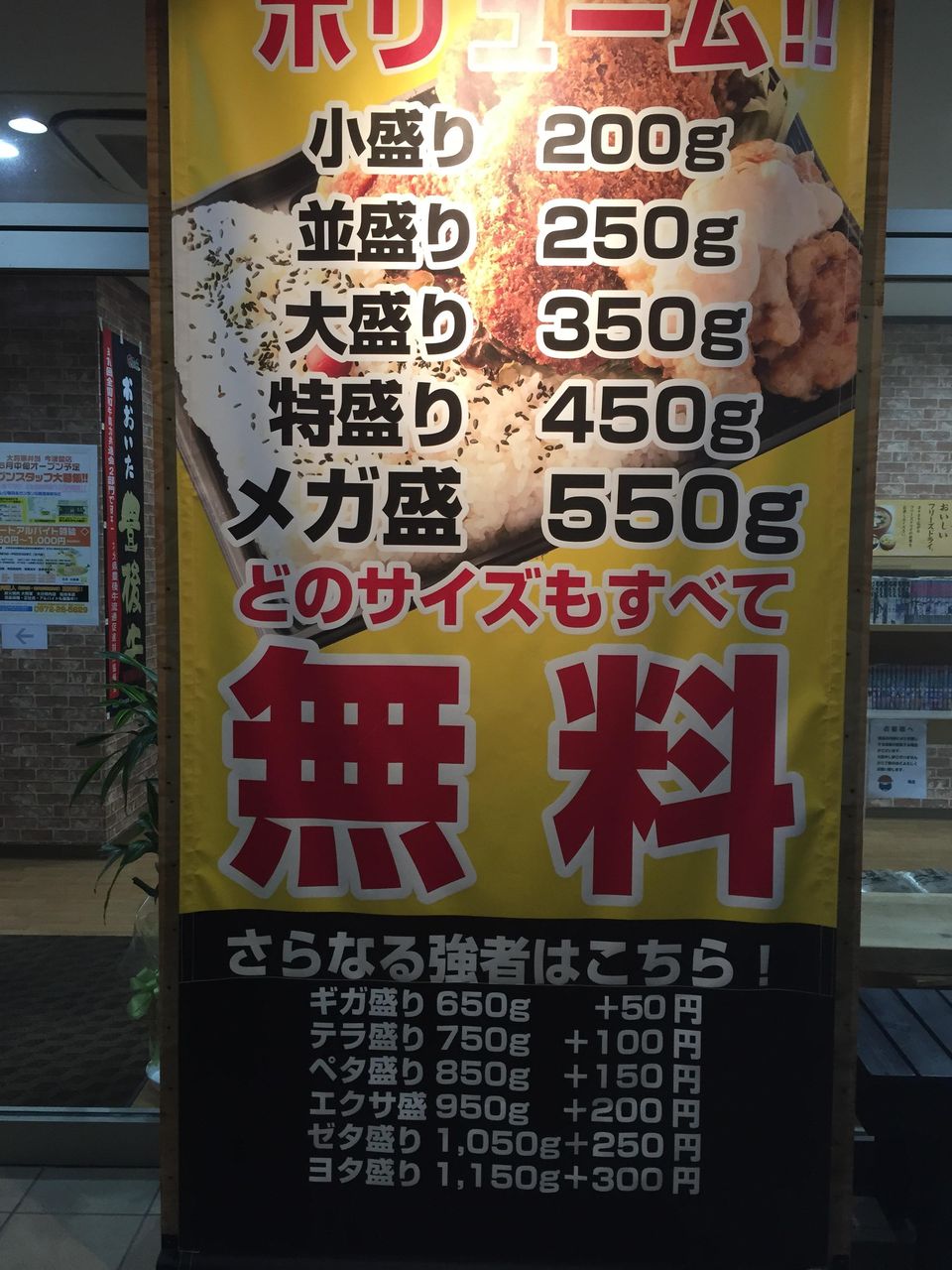 - 弁当の大盛りなら
