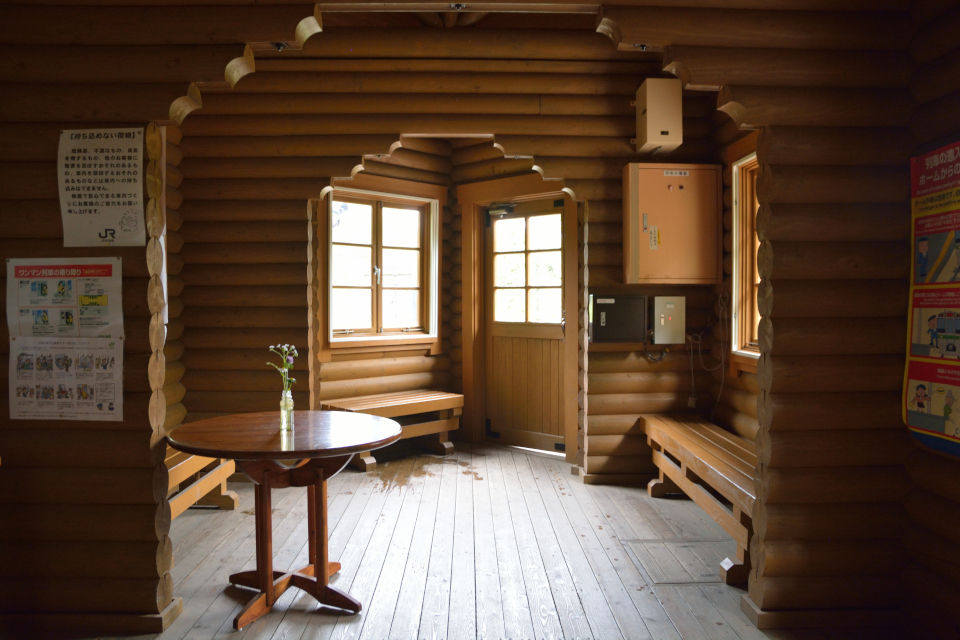 (;^ω^)「こんな立地場所の割に、ログハウス調のオシャレな駅舎なんだよな」