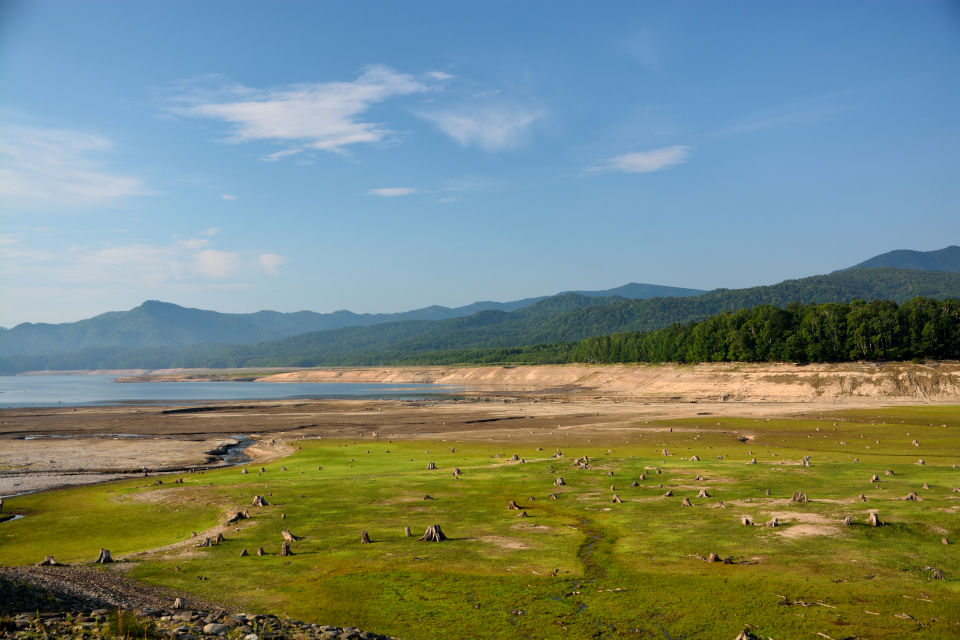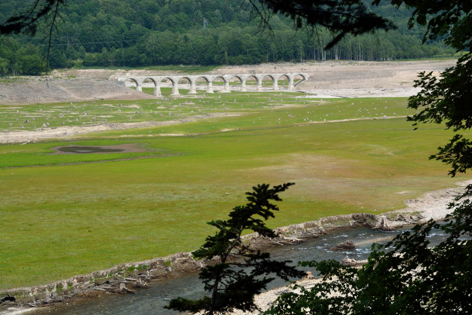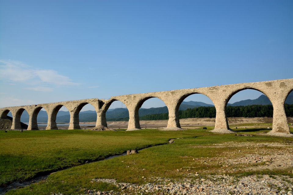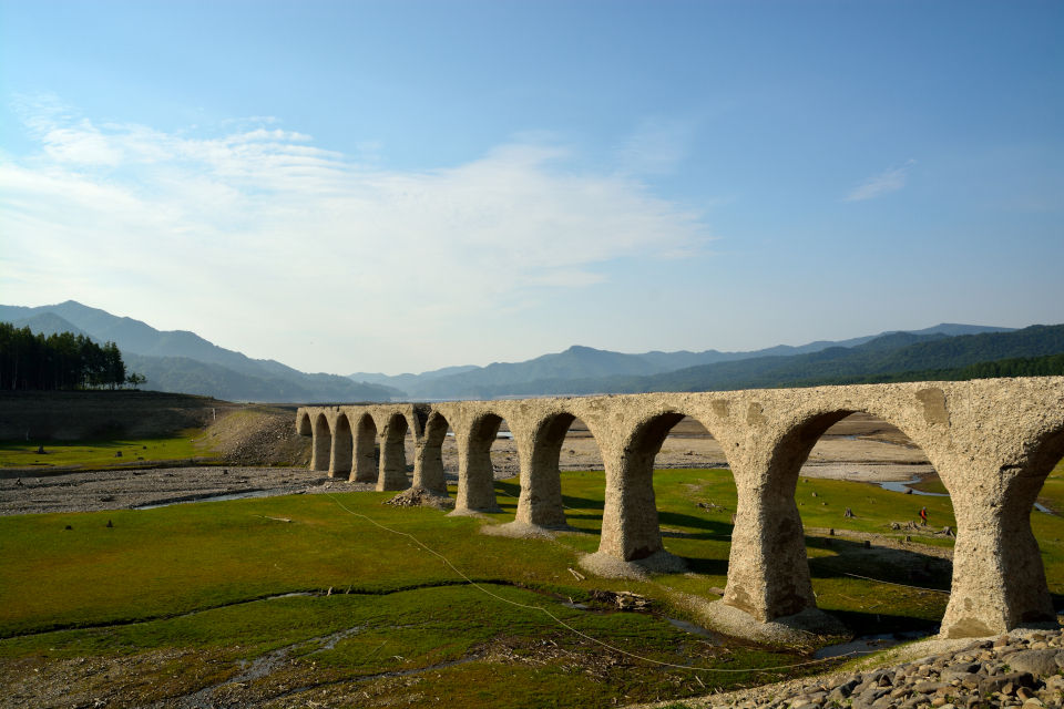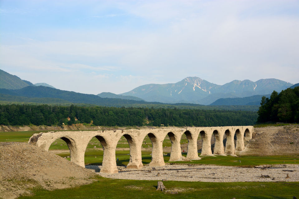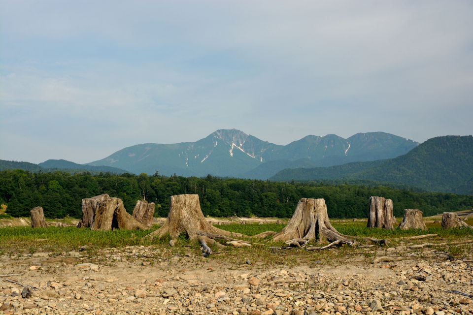 ( ^ω^)「無数の切り株の向こうにタウシュベツ川橋梁が見えるな」