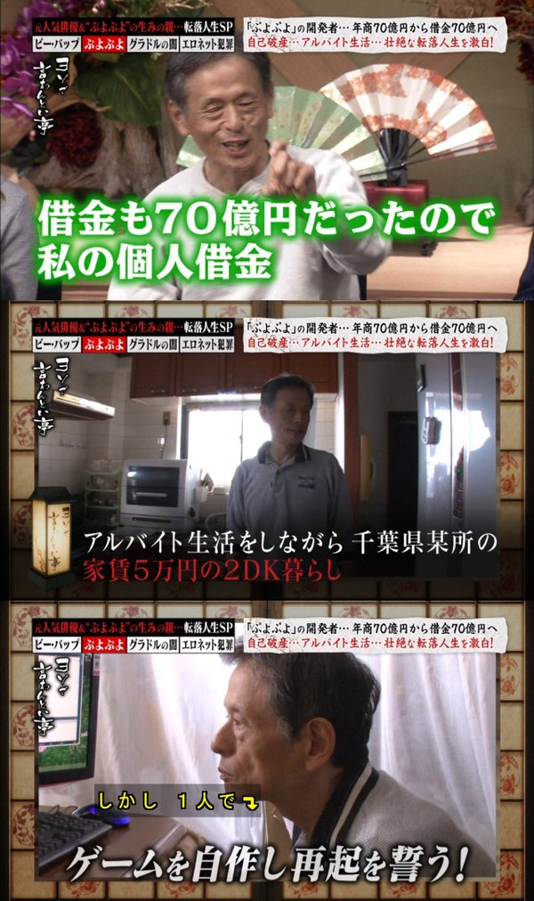 - ・【テレビ】 「ぷよぷよ」生みの親は今バイト生活、最盛期年収1億円コンパイル創業者が誕生秘話や近況を告白