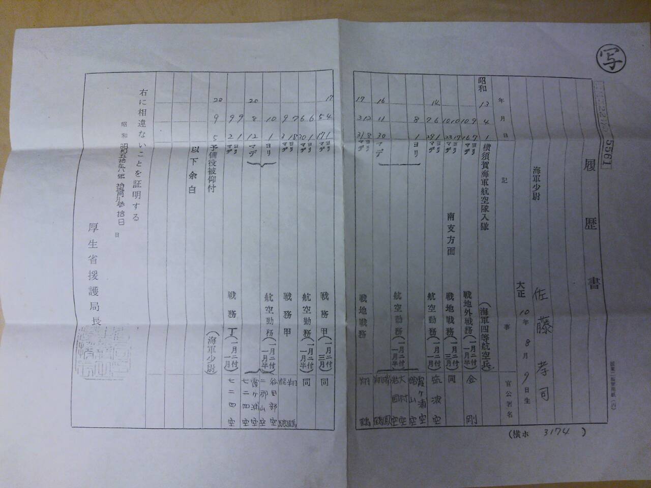 - ・元軍人のひいおじいちゃんの履歴書を入手したので詳しい人教えてください