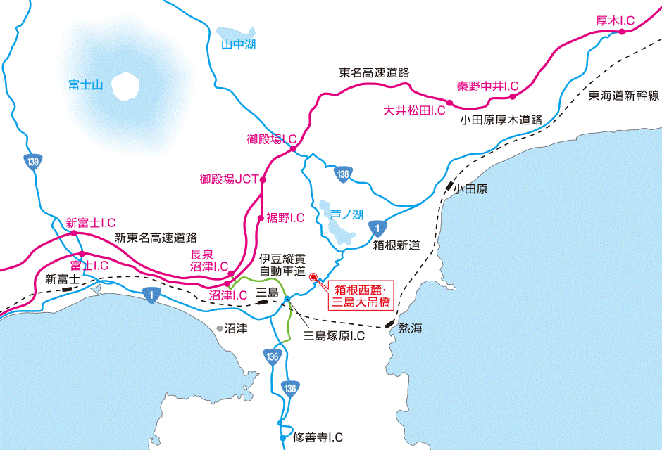 「三島スカイウォーク」を愛称とする。空にそびえる富士山や駿河湾、