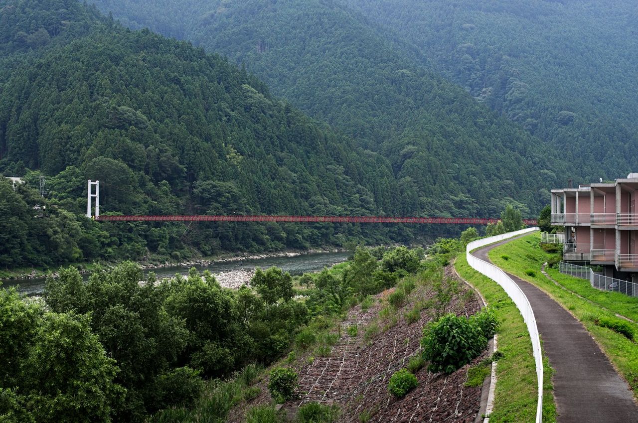 そこから見つけた赤い吊り橋