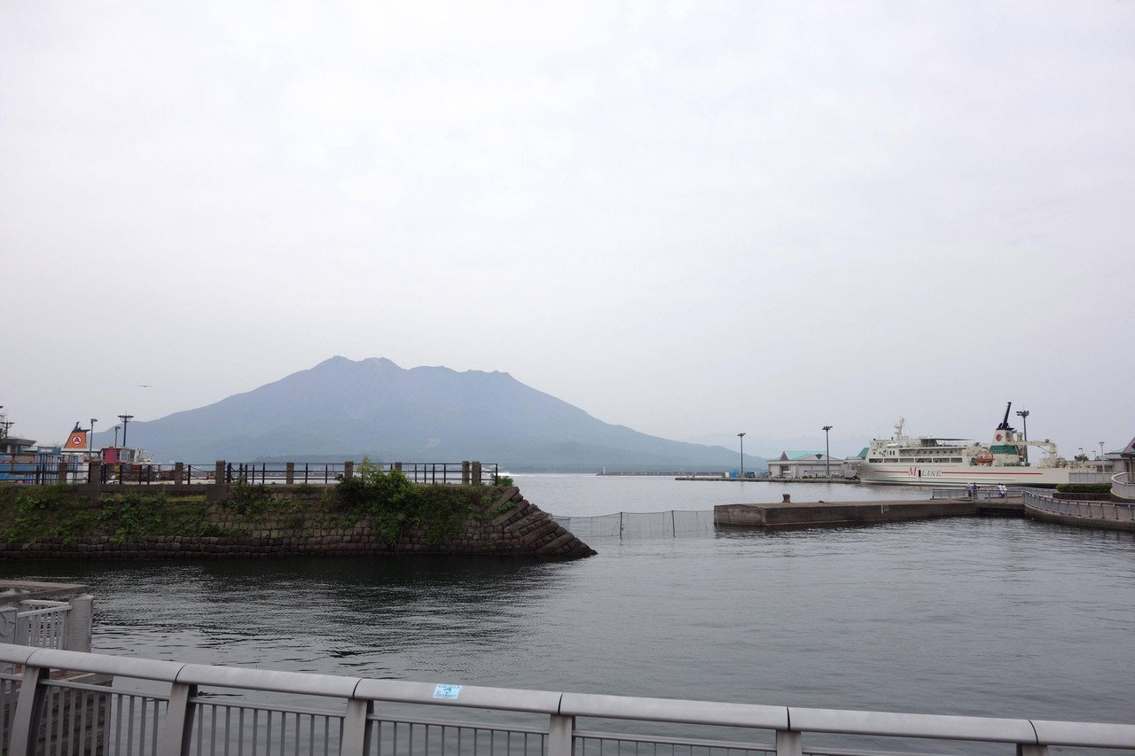 ドルフィンポートからちょっと歩くと港があるんですが、桜島が綺麗に見えました。