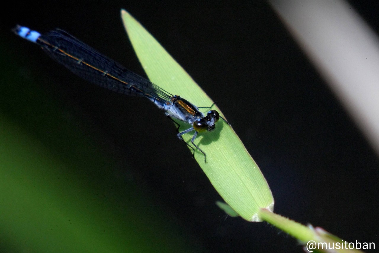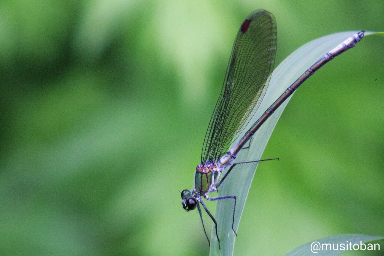 トンボはニホンカワトンボとクロイトトンボです