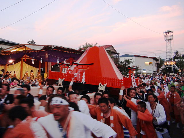 赤い富士は火山で 神社がそれを防ぐという意味なんだろうか