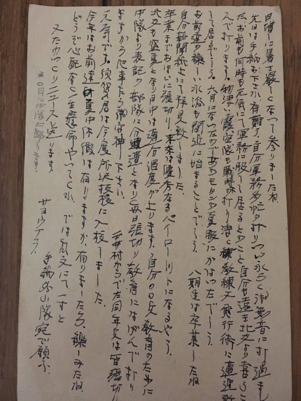 中隊より表記の部隊に分遣となり毎日張り切り教育にはげんでおりますから心事~~下さい