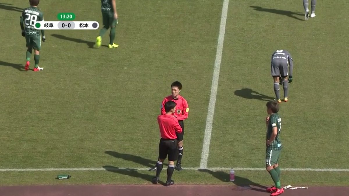“事件”は前半11分に起きた。岐阜のMF永島悠史が敵陣で味方と勘違いし、松本MF工藤浩平にパス。さらに工藤も岐阜FW田中パウロ淳一にパスしてしまった。ユニフォームはホームの岐阜が緑、アウェーの松本はグレーだったが、色が識別しにくいことから立て続けにパスミスが起こり、選手や大木武監督が抗議。審判とともに両チームの選手、監督がピッチ上で協議した。試合は約3分間中断となったが、中断時間はノーカウントとして試合はそのまま続行となった。