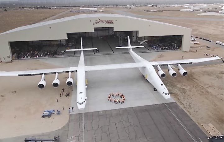 ストラトローンチ母機の右側胴体にコックピットがあり、左胴体にはフライトデータシステム各種とペイロード制御を収める