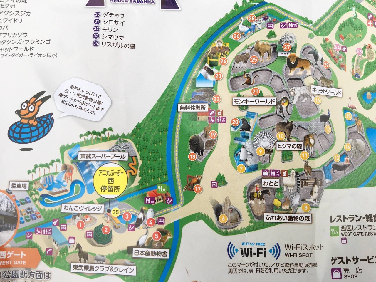 入り口から動物のエリアまで結構遠いから多少はね?