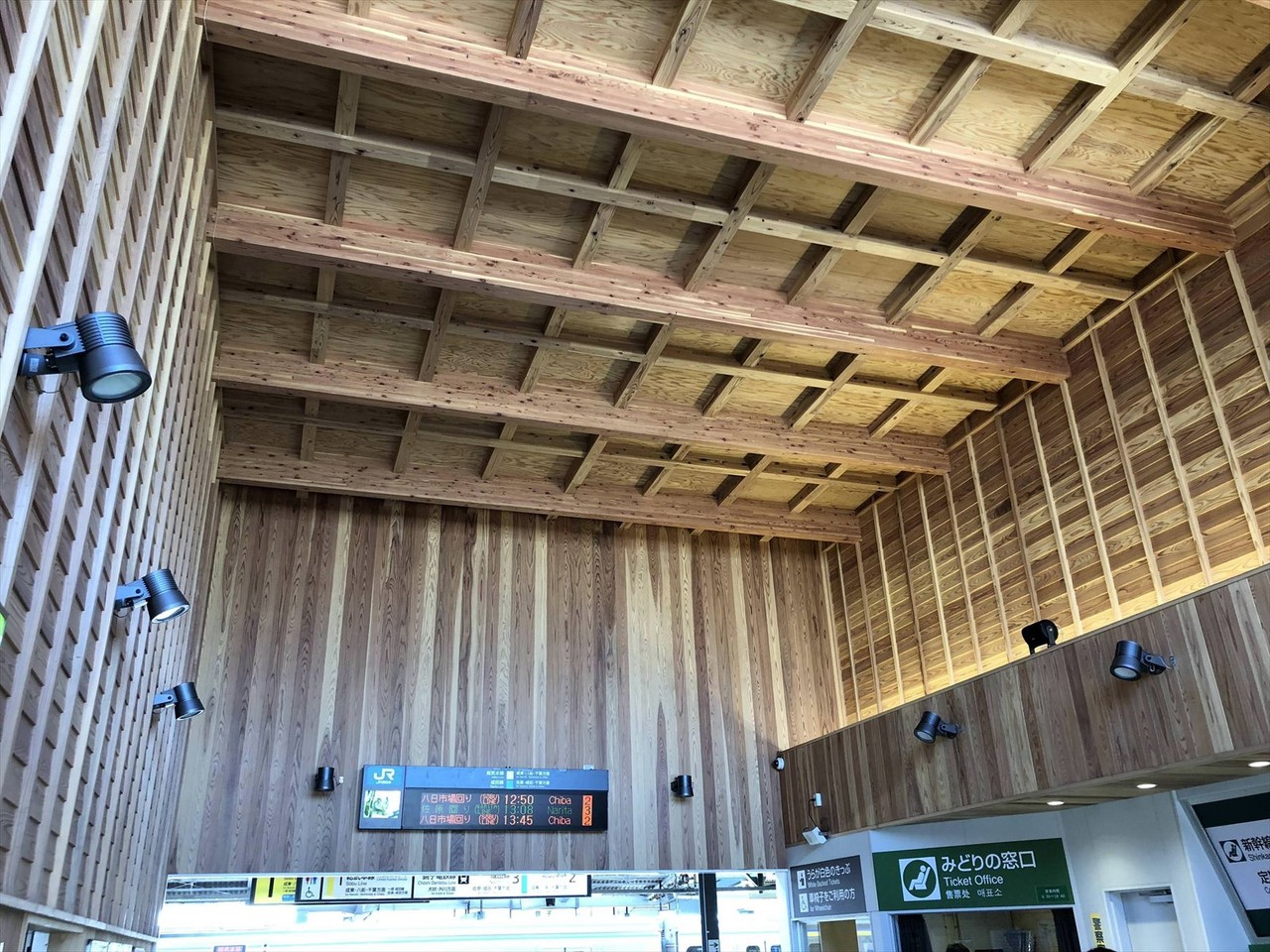 駅舎の中は高い天井で、しかも木造。