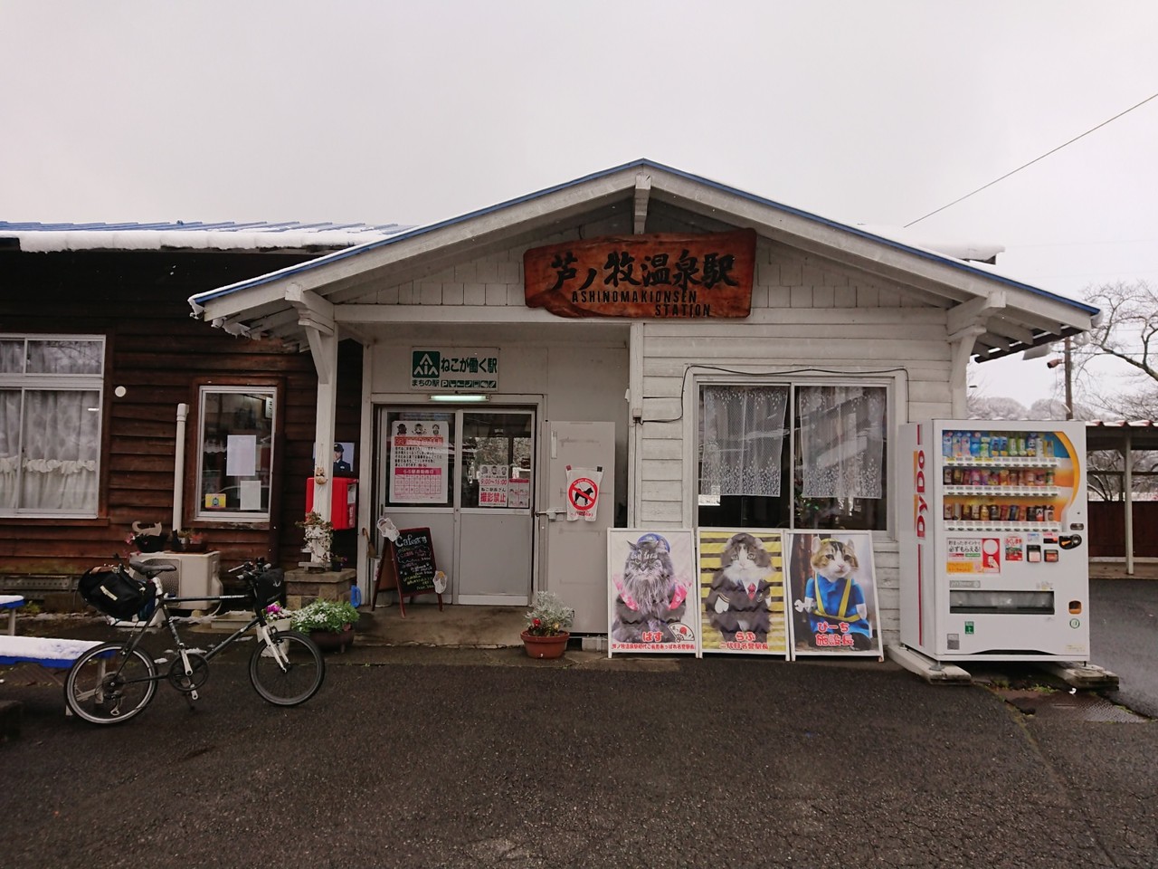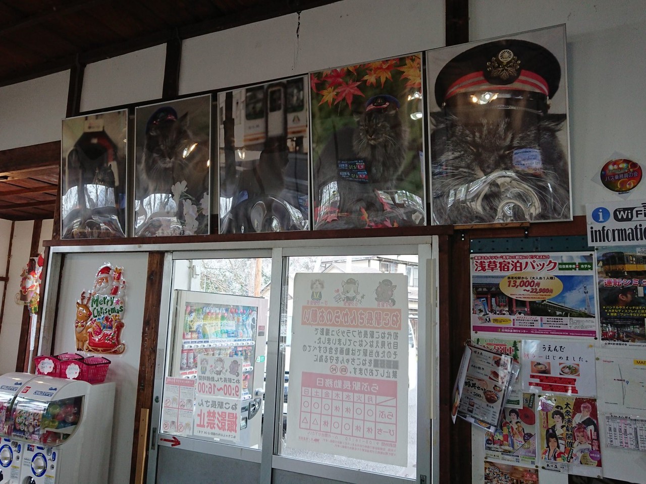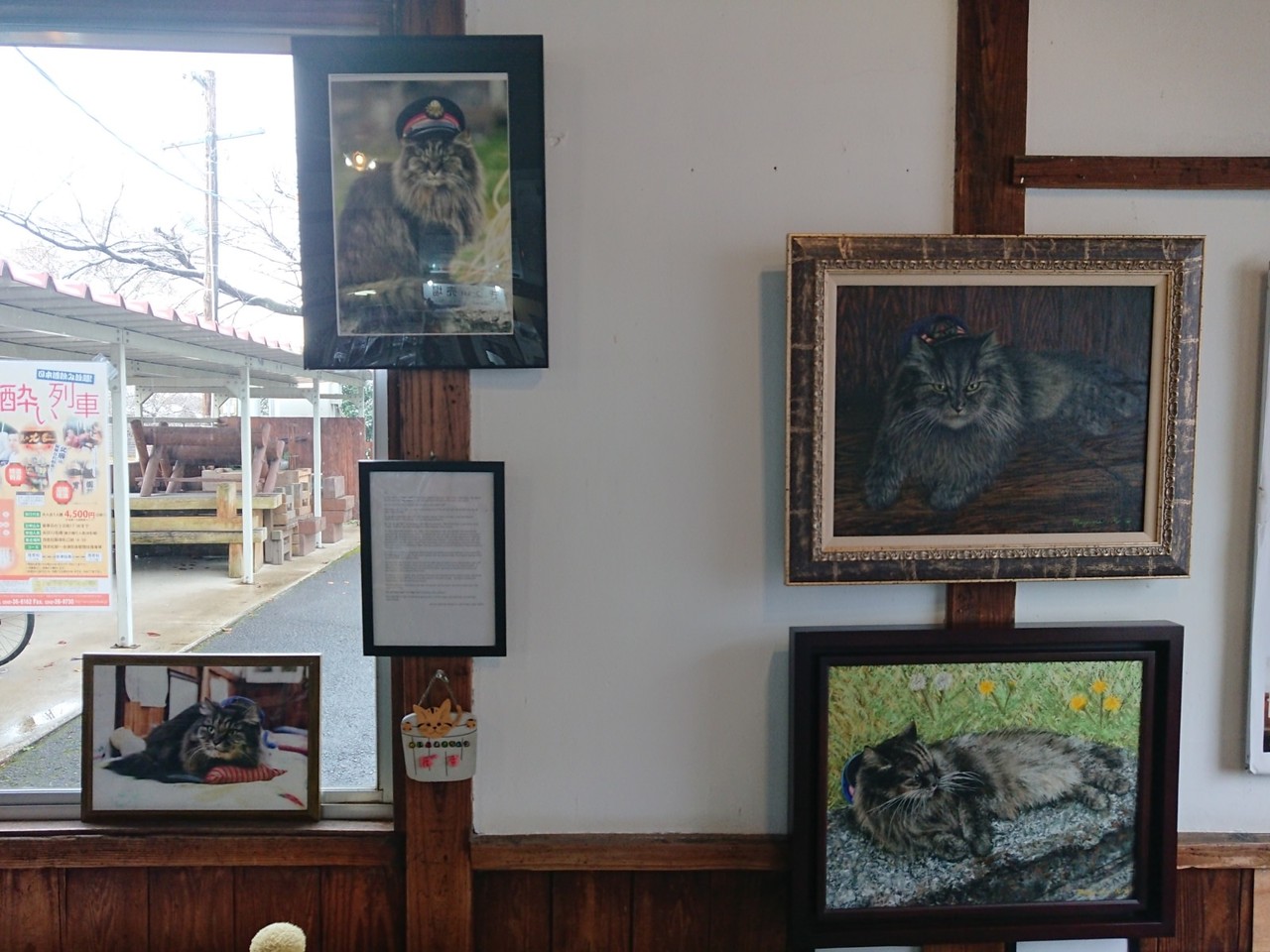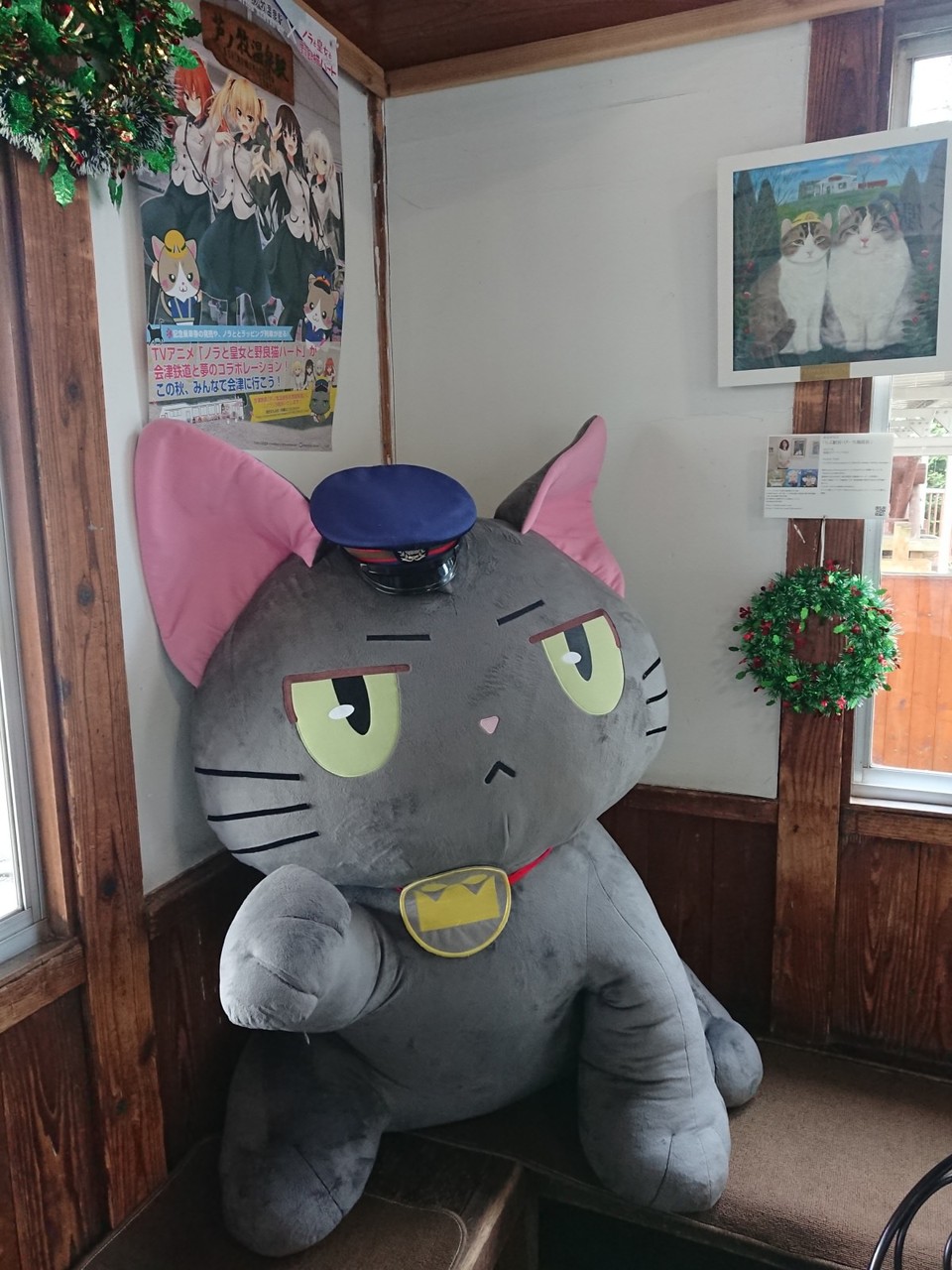 いまヌコ駅長が駅員室から出てきて