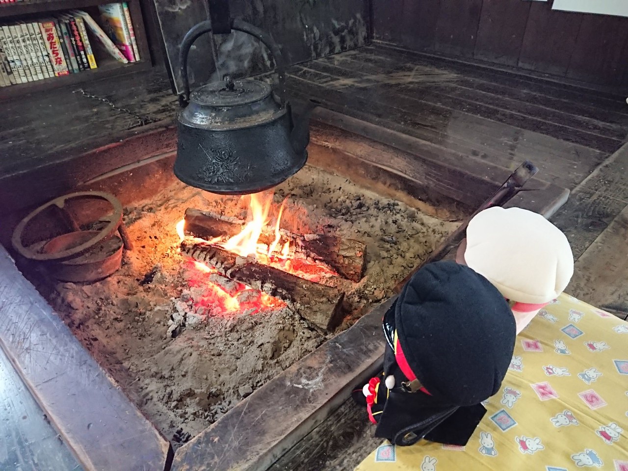 ストーブにあたっている??