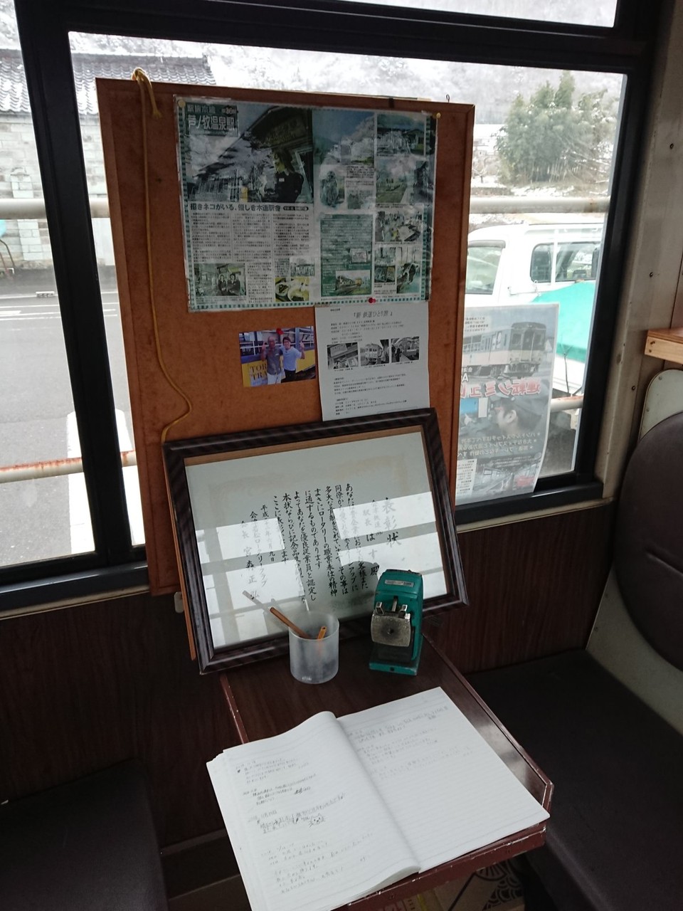 ヌコ駅長は駅員室のヌコタワーで