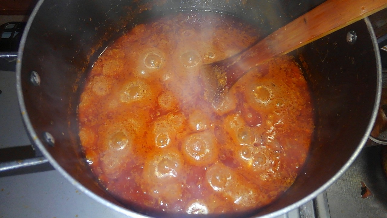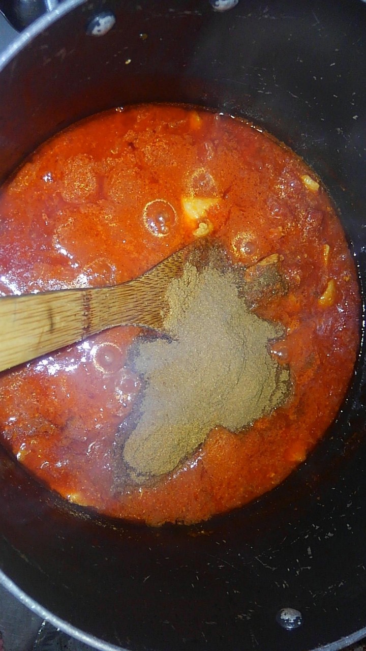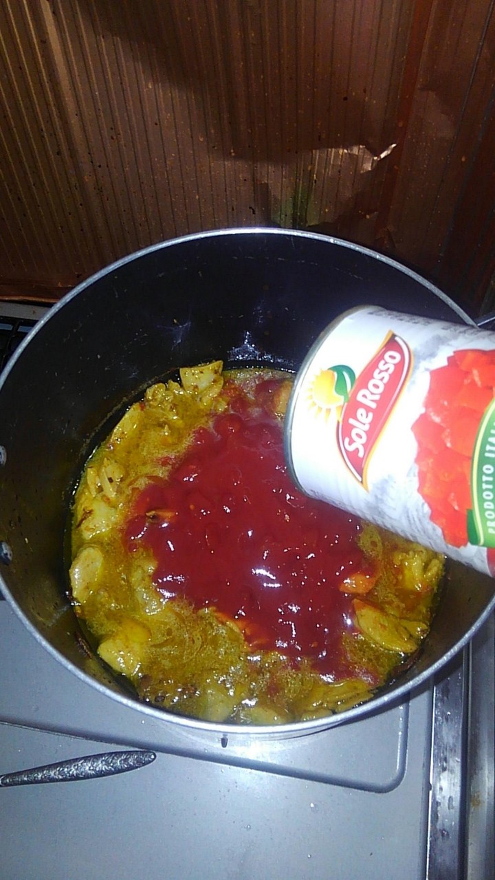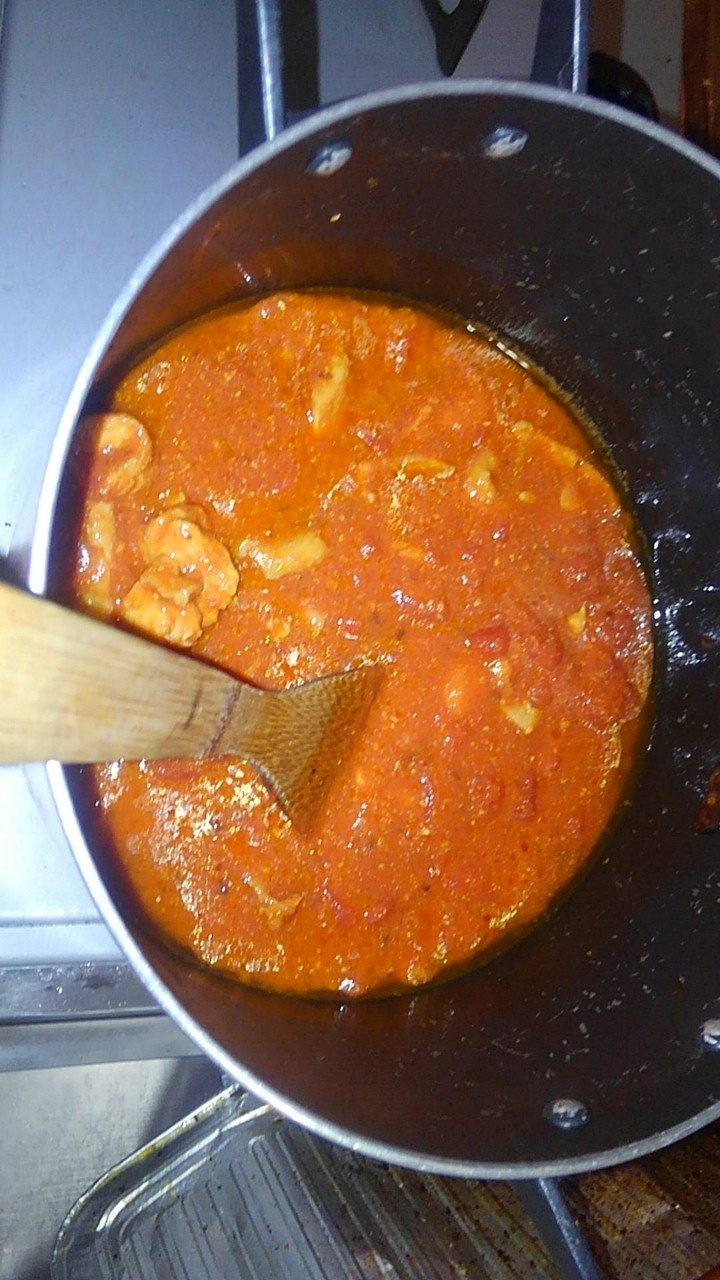 さてそろそろ鶏肉もいい感じだからトマト缶をぶちこむぜ
