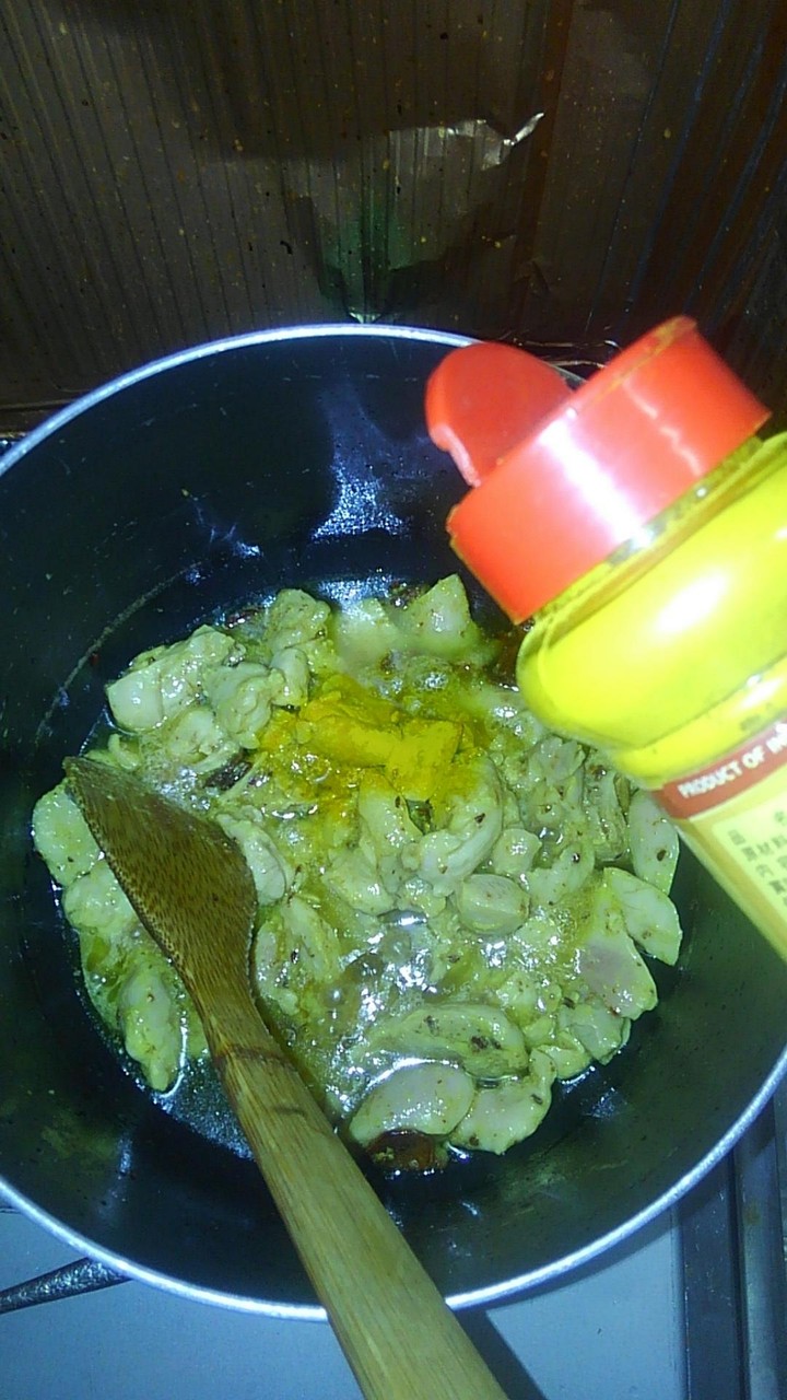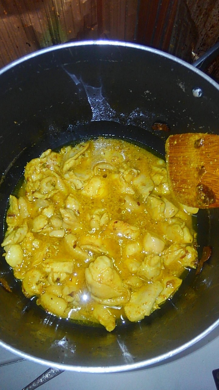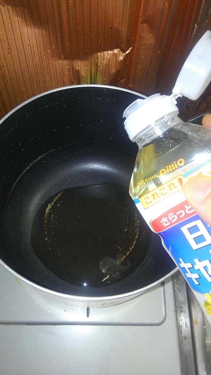 次はこの油で鶏肉炒めてくで