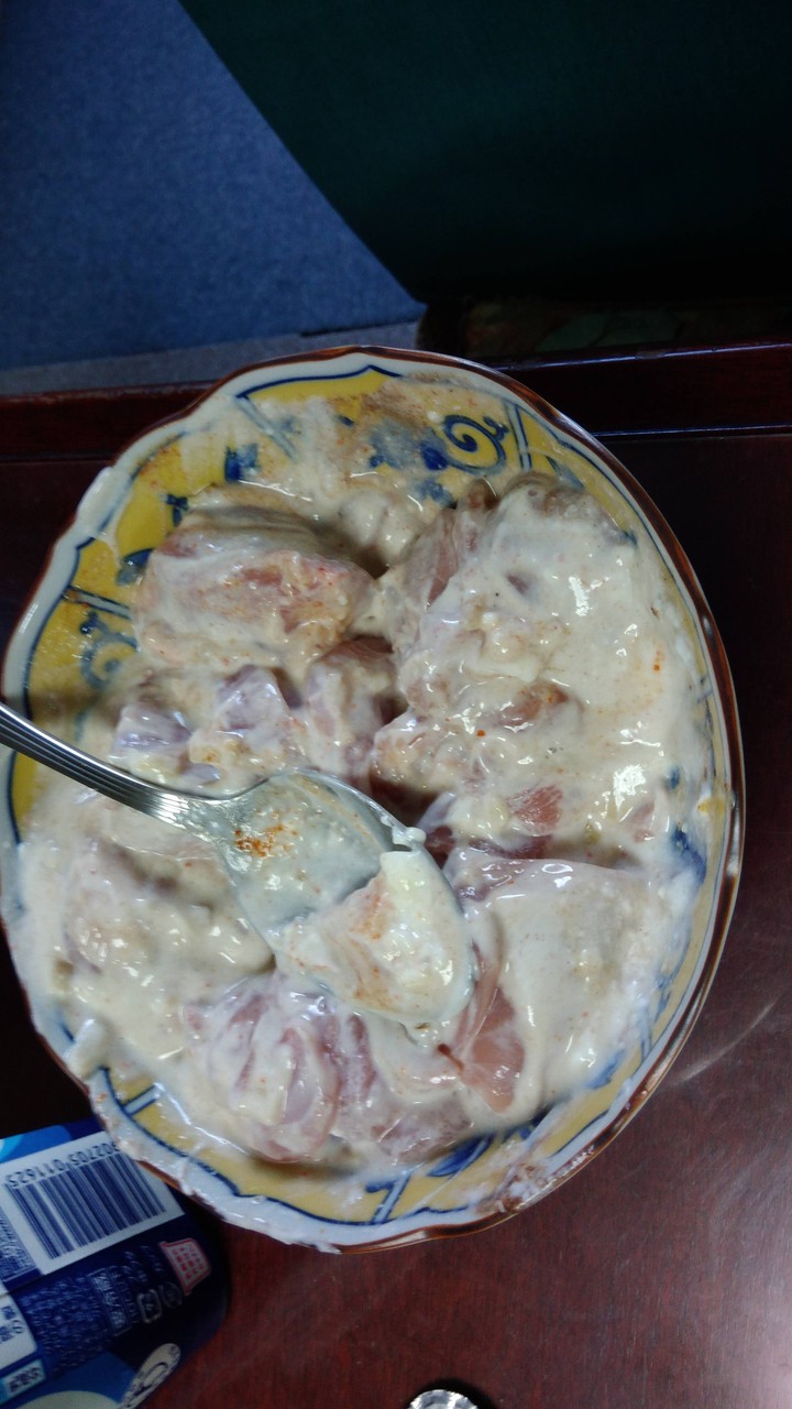 鶏肉はヨーグルトとスパイスとレモン汁で1時間寝かせておくと柔らかくなって美味しくなるぞ