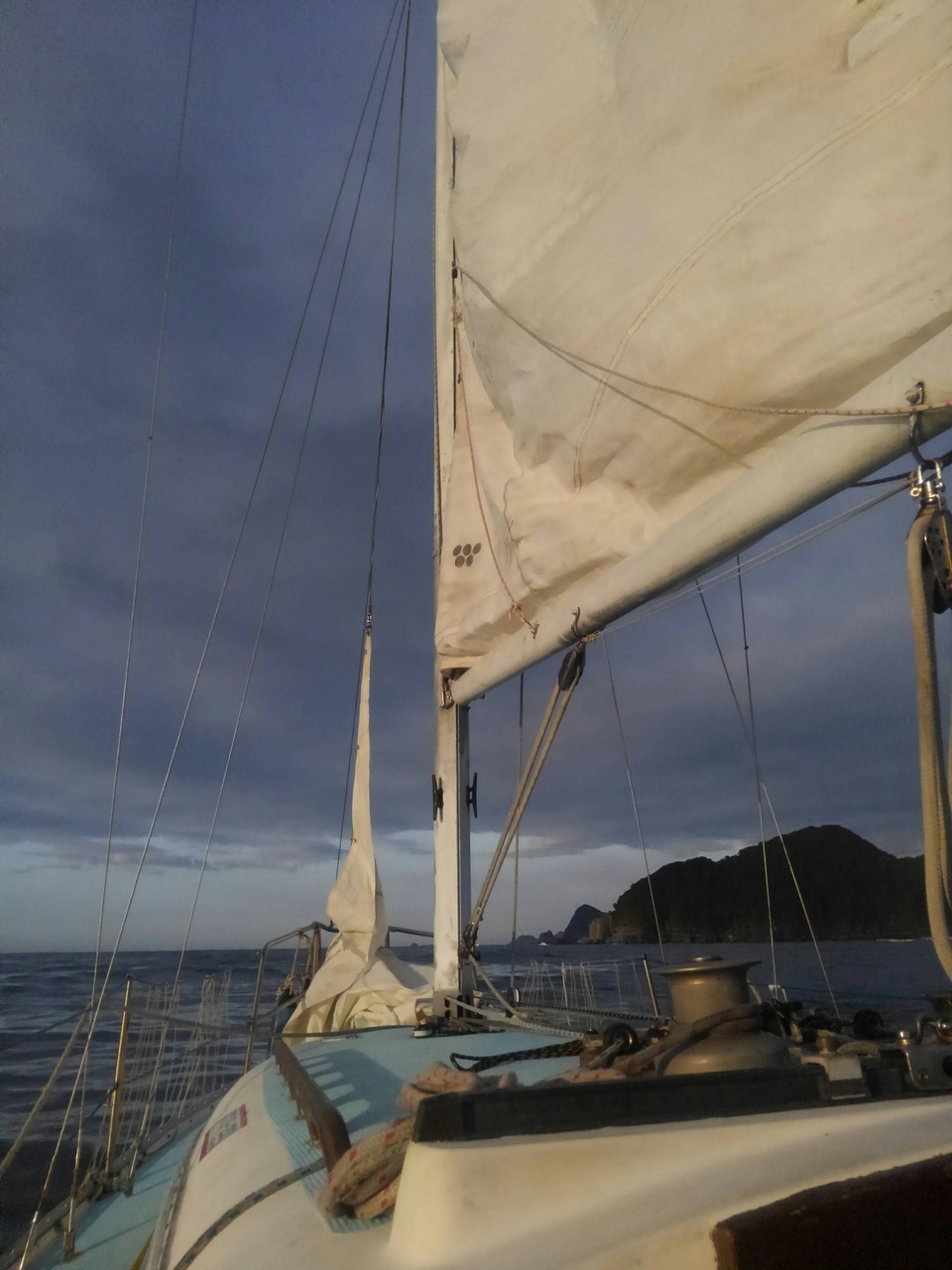 その後、何とか海峡を抜け、その後は帆走で保戸島を目指す