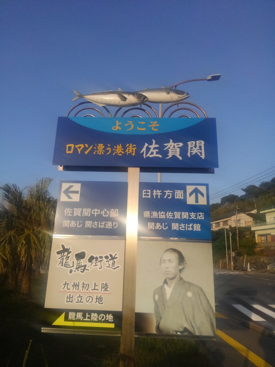 上陸して国道に出る道の途中で「ようこそ!ロマン漂う港町、佐賀関」と書いてある看板を見つけた