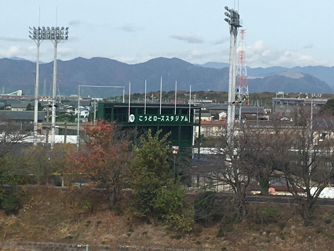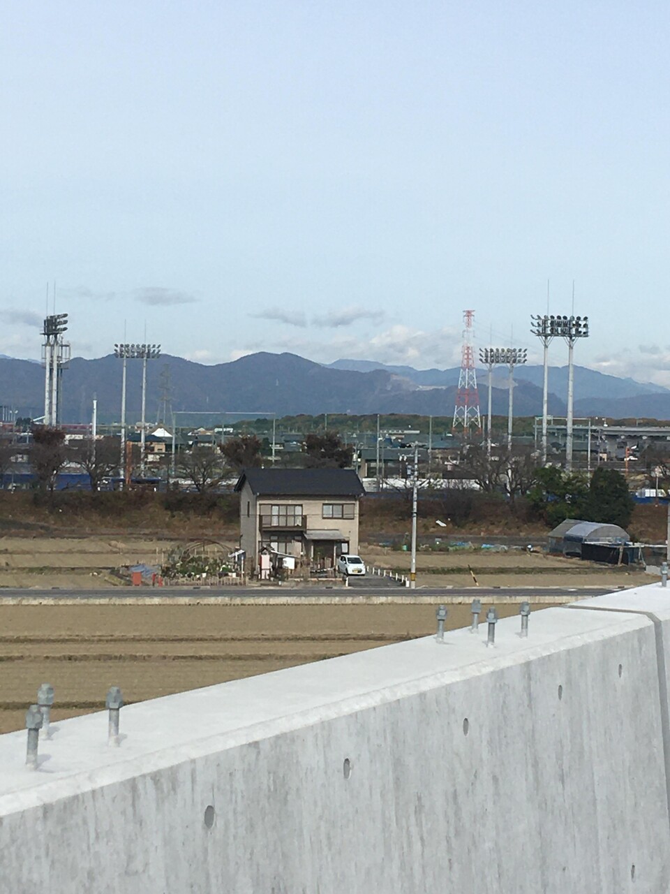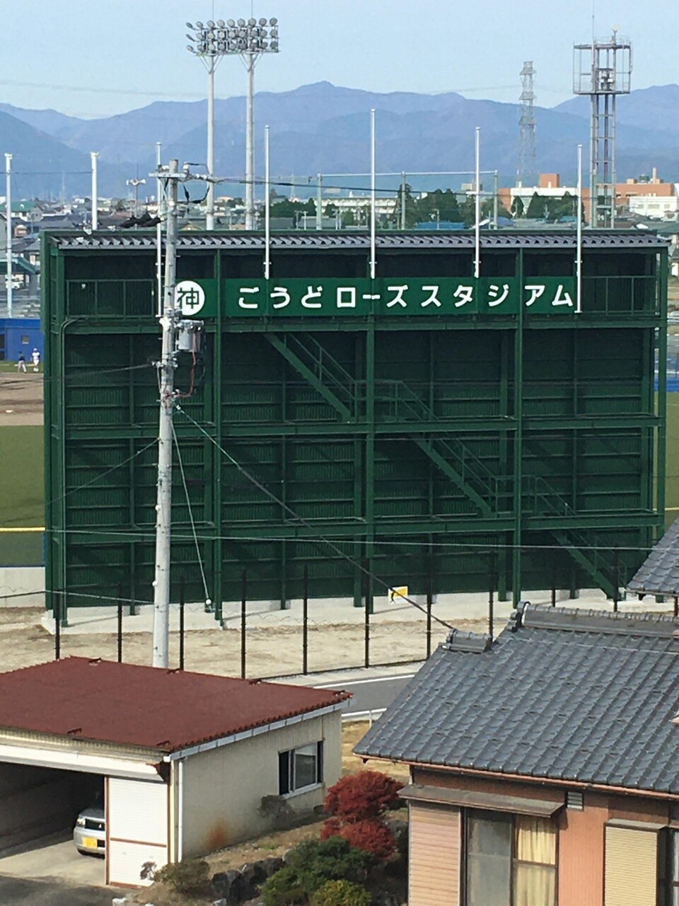 スタジアムの手前の一軒家が目立つ