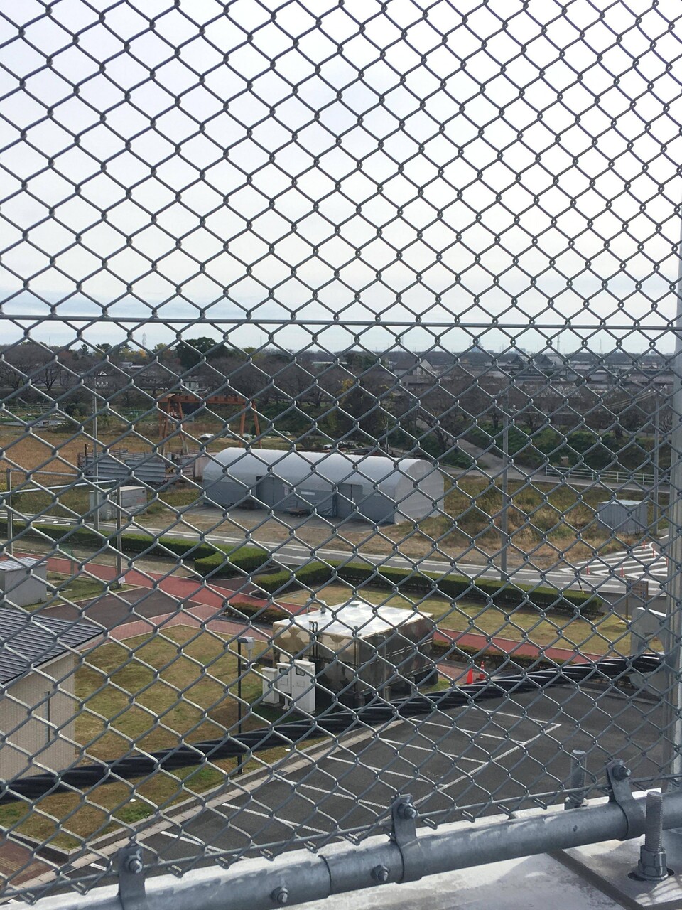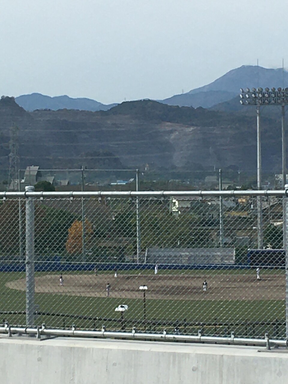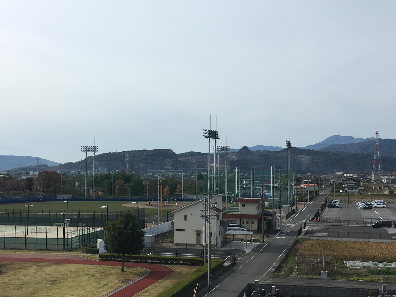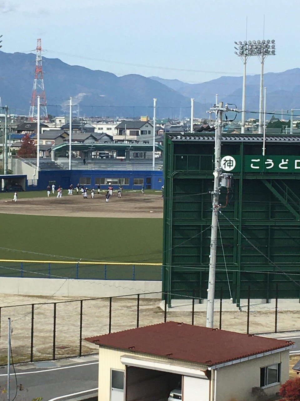 スタジアムの手前の一軒家が目立つ
