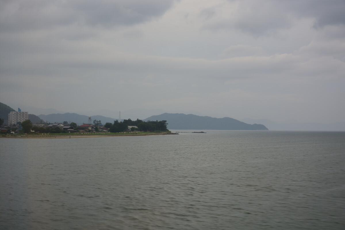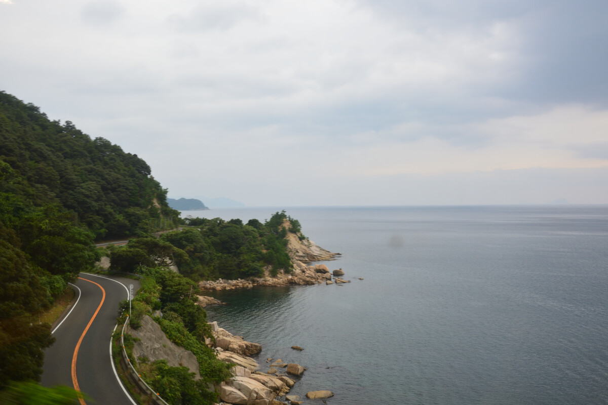 ( -ω-)「せっかく海沿いを通るのに、曇り空なのが惜しいな」