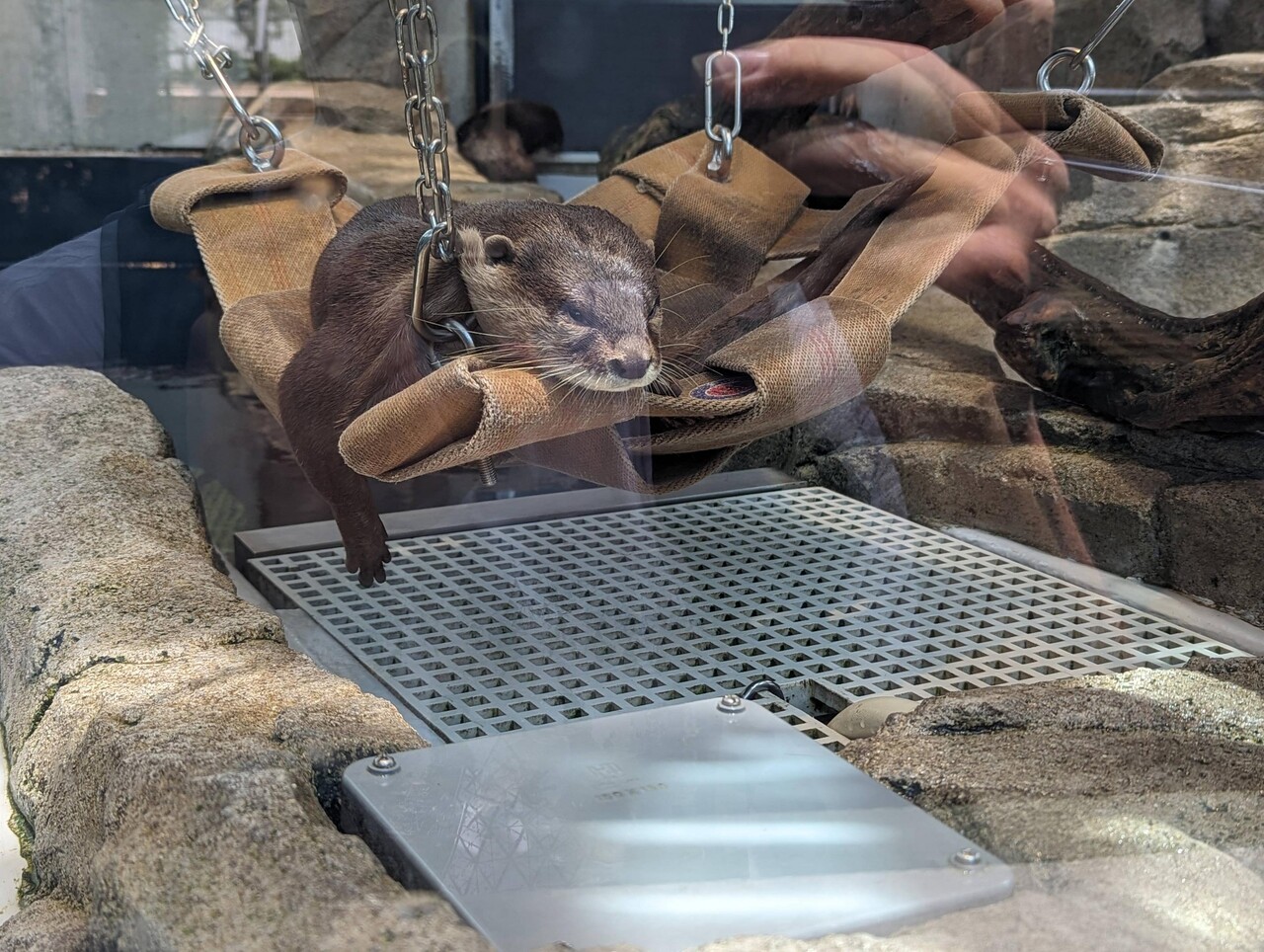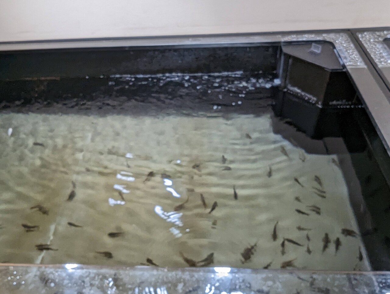 水槽の周りおさんぽしてたで